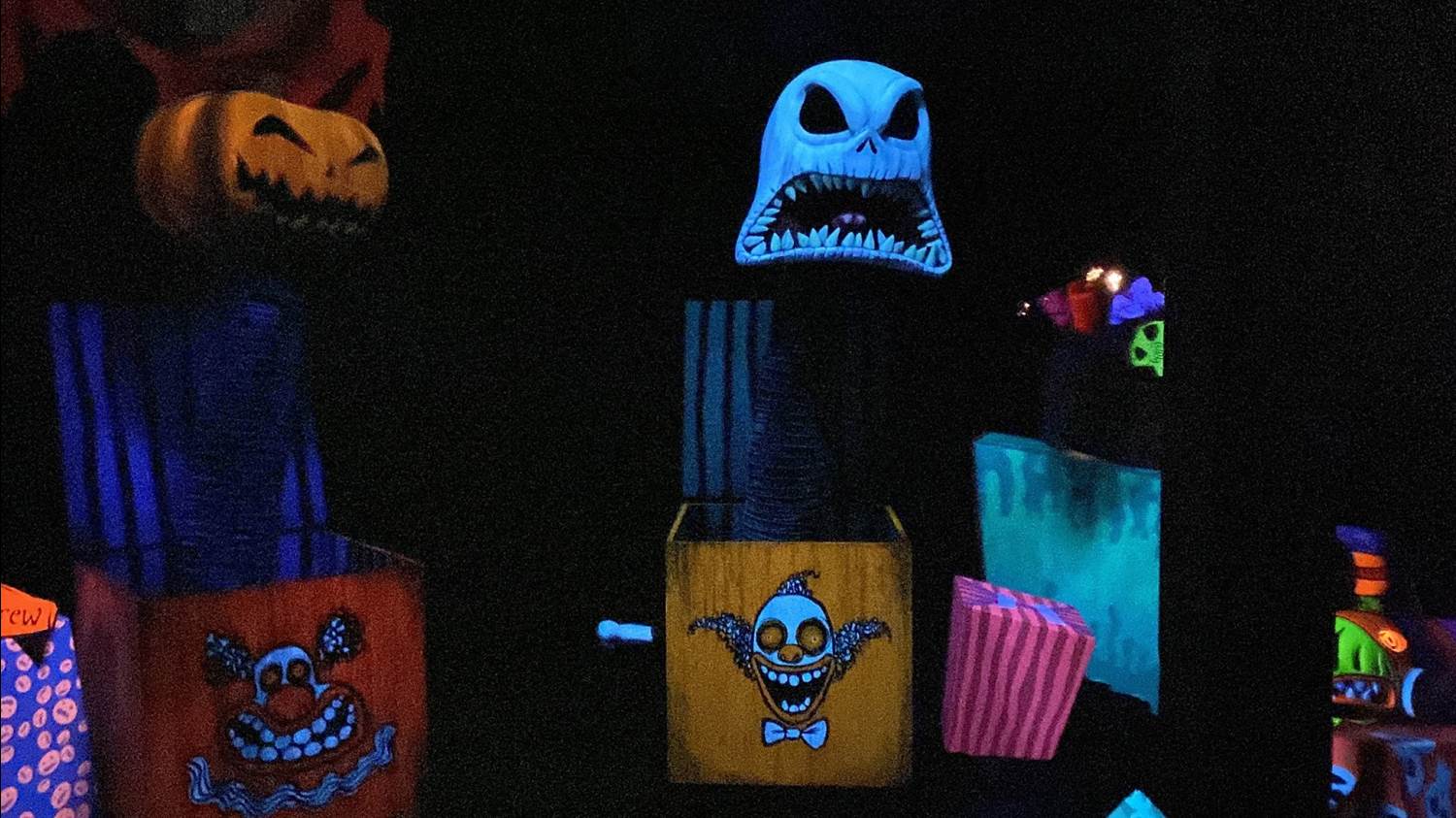 In the attic, not only has the pumpkin present’s box been updated but a Jack in the box has been added. If you look closely at the clowns displayed on each box, they may look a bit familiar.