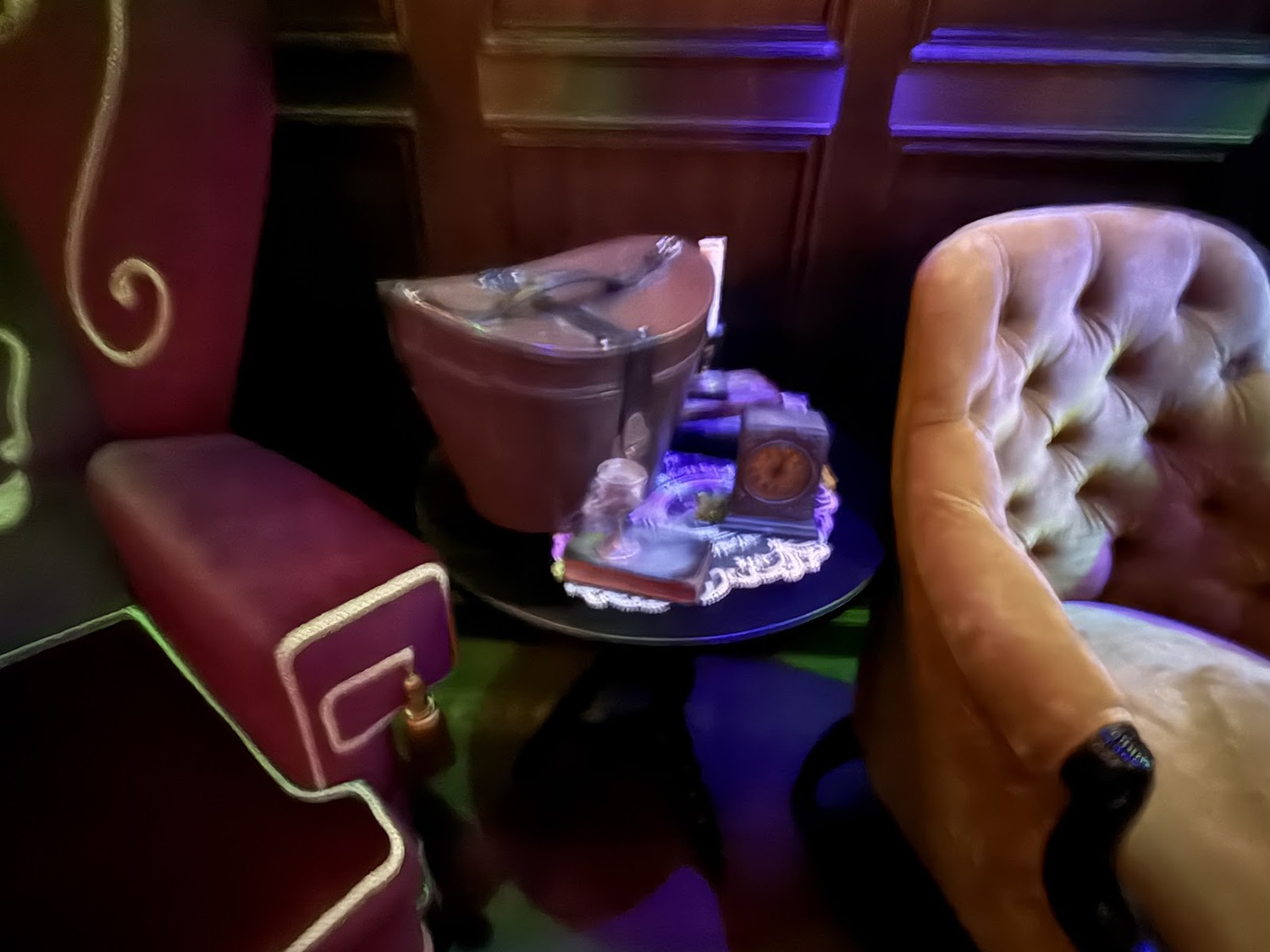 The Haunted Mansion Parlor occupies the same spot as the Star Wars Hyperspace Lounge from the Disney Treasure’s sister ship, the Disney Wish. This new experience invites guests into the next chapter of the Haunted Mansion lore, focusing on a story of a sea captain who entered the ghostly realm after a disastrous dinner with his beloved fiancé.