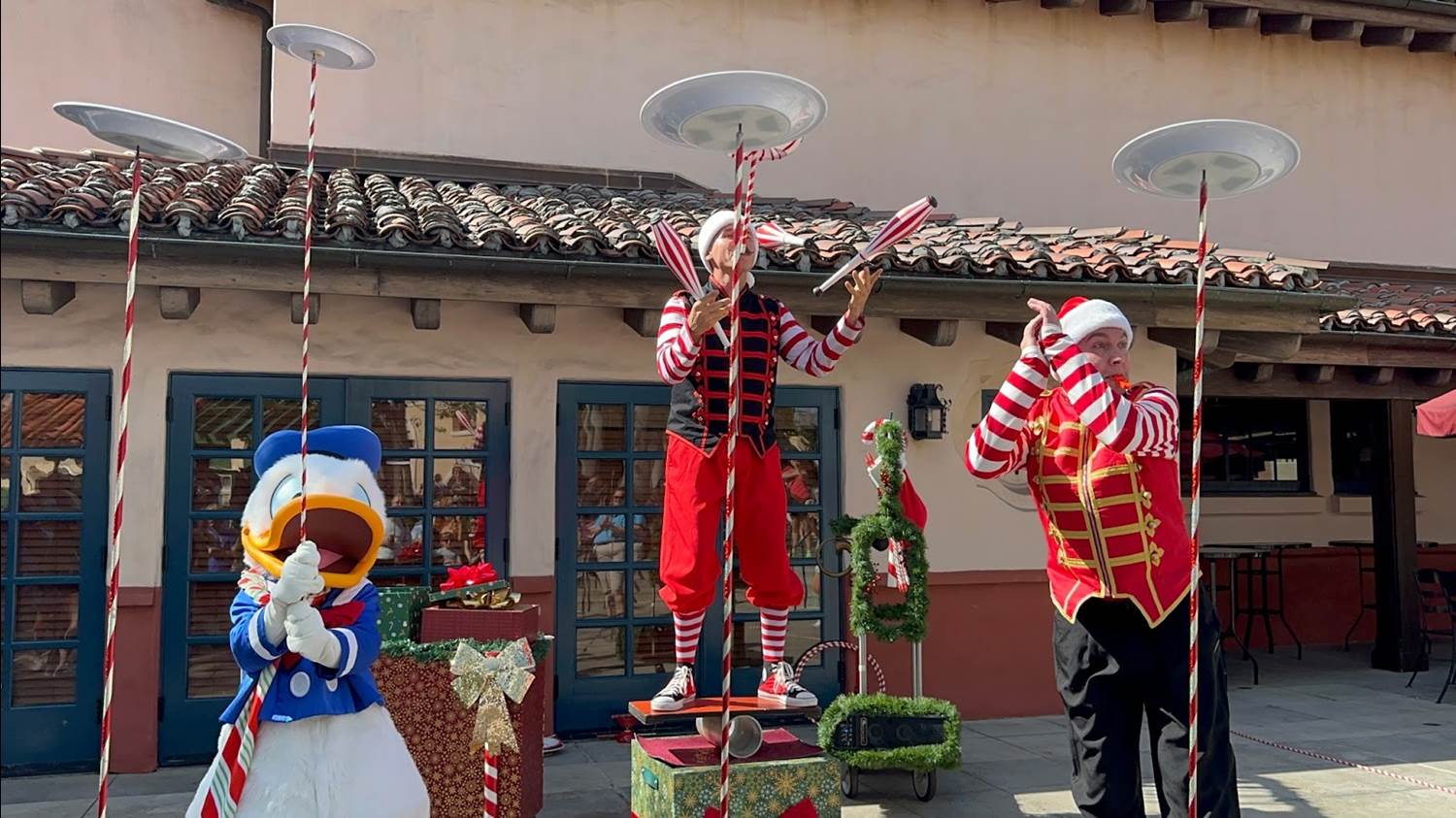 If you’re looking for some more silly holiday antics, then look no further than these “Jolly Juggling Elves" – who perform some daring feats with the help of the audience and a special appearance from Donald Duck. The elves perform in front of the former Starring Rolls Cafe at the beginning of Sunset Blvd.