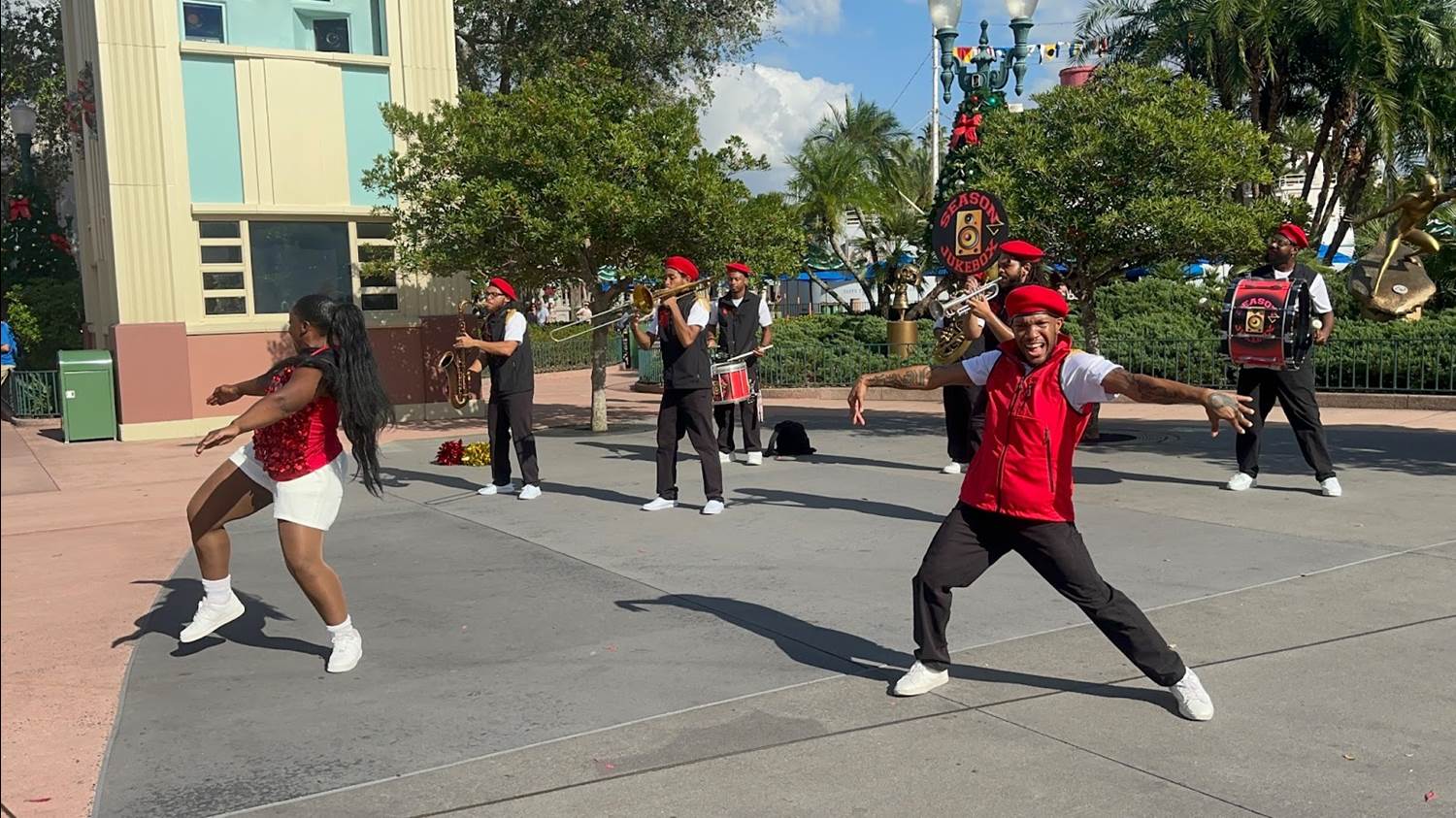 Seasonz Jukebox feels like a high school drum corp adding in a high energy dance routine. You can catch them performing in the center of the park near the Chinese Theater.