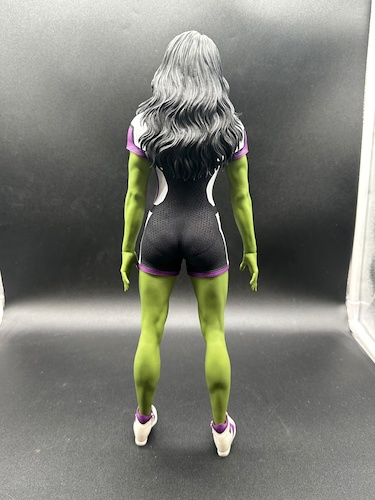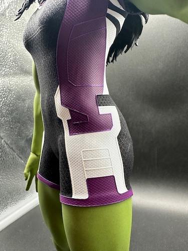 Given the need for her to show off those buff arms and legs to allow for maximum fight time mobility, She-Hulk’s costume isn’t elaborate, but you can see some nice design details on the figure. Hey, her renowned costume designer Luke Jacobson had to put in some layering and texture!
