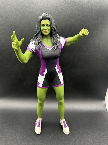 The one place there are visible seams is at her wrists, which is unfortunate, given it stands out from the realism of the rest of the figure, yet is somewhat impossible to avoid in order to have swappable hands. It’s just too bad the TV show She-Hulk didn’t wear wristbands or gloves to hide those seams, given she often has done just that in the comic books.