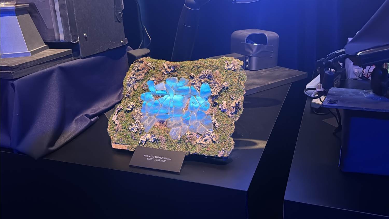 Above the ride vehicle maquette, guests can see a video showcasing the many stages of development for the vehicle, including a look at the full-size vehicle itself.