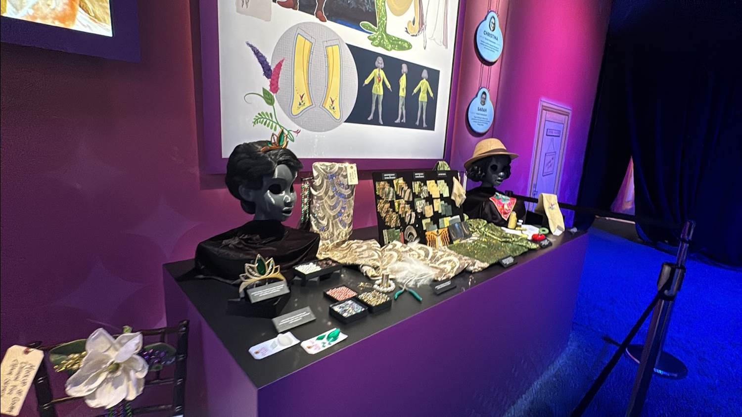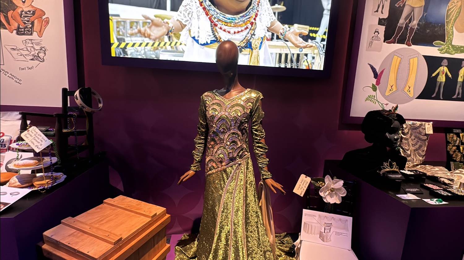 Tiana’s Bayou Adventure gets a look-in with Tiana’s costume from the finale scene on display, among other items.