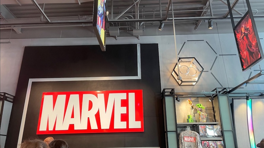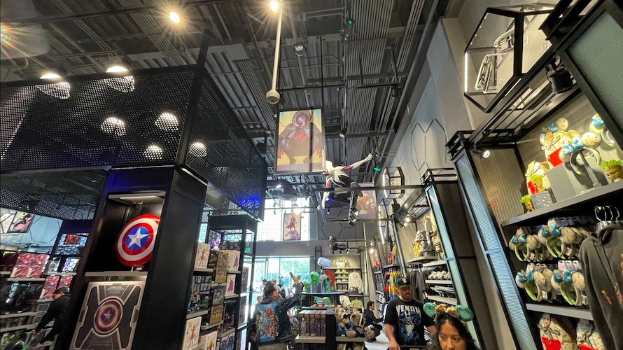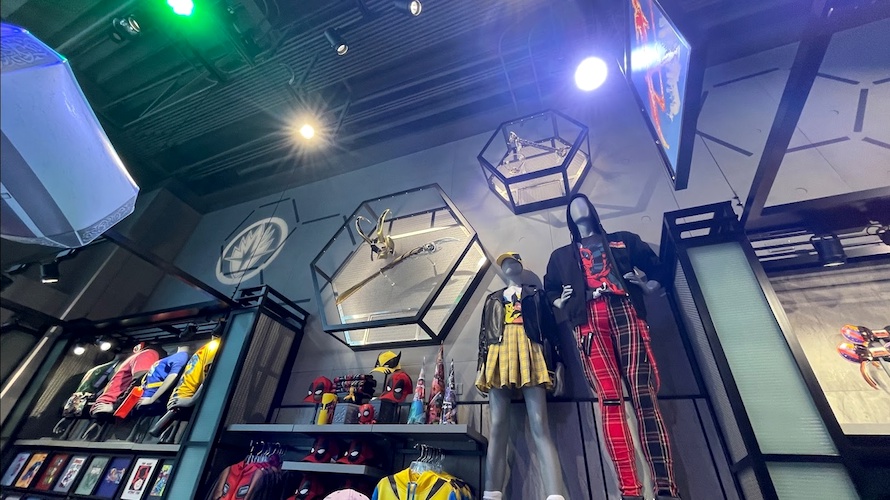 The new store is located in the new west-side expansion area of Downtown Disney, near another recently opened store, The D-Lander Shop. Outside, guests can see Spider-Man hanging from the store’s sign, and can also pose for a picture with the Incredible Hulk.
