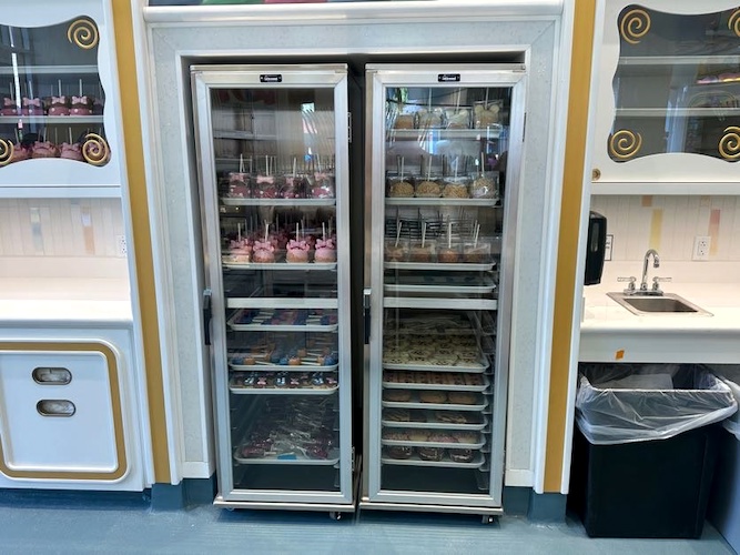 Of course, no Disney bakery would be complete without a display case full of treats. Guests visiting the new retail location will find delicious cookies, rice crispy treats, marshmallow wands, and more! Don’t forget to check out the large exhibition kitchen windows to watch these delicacies being crafted.