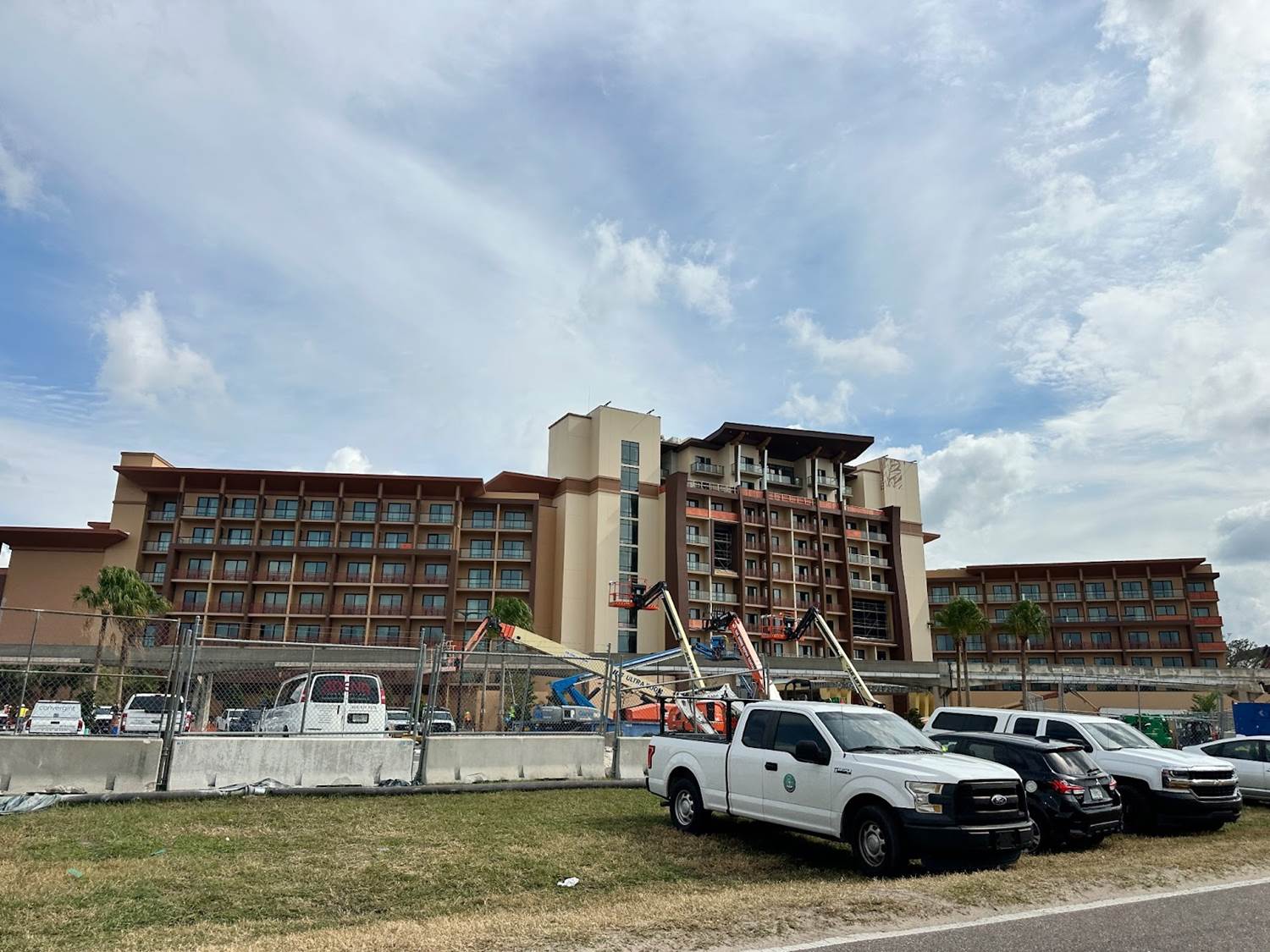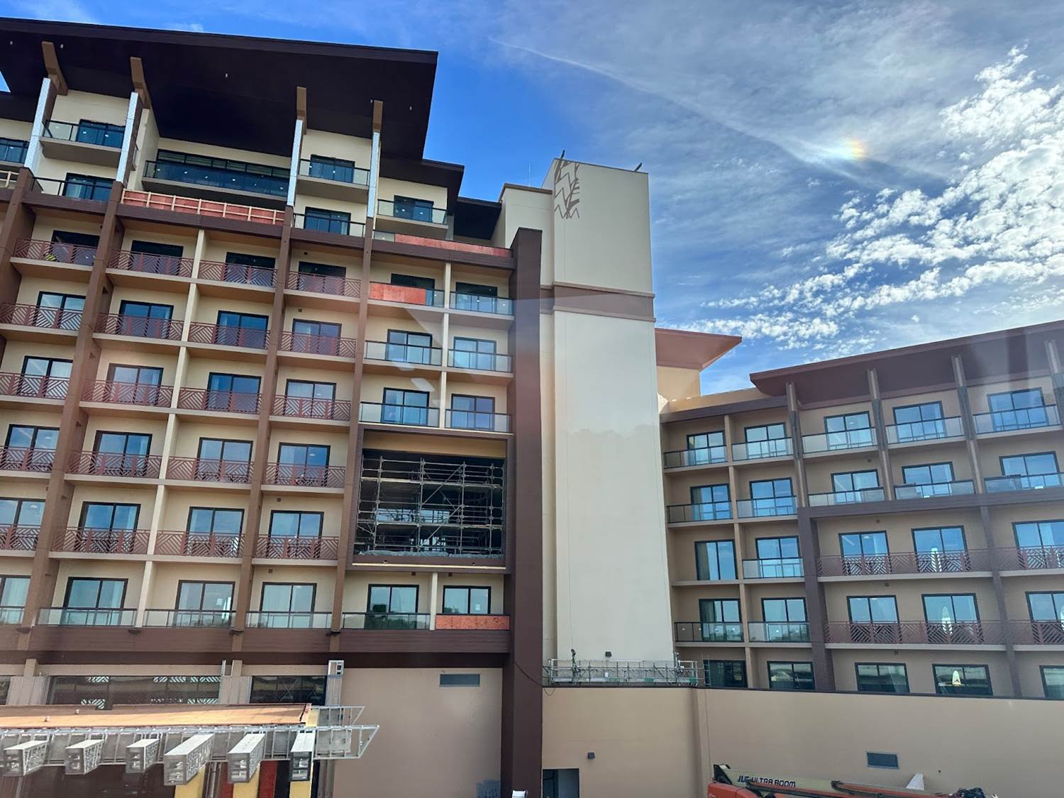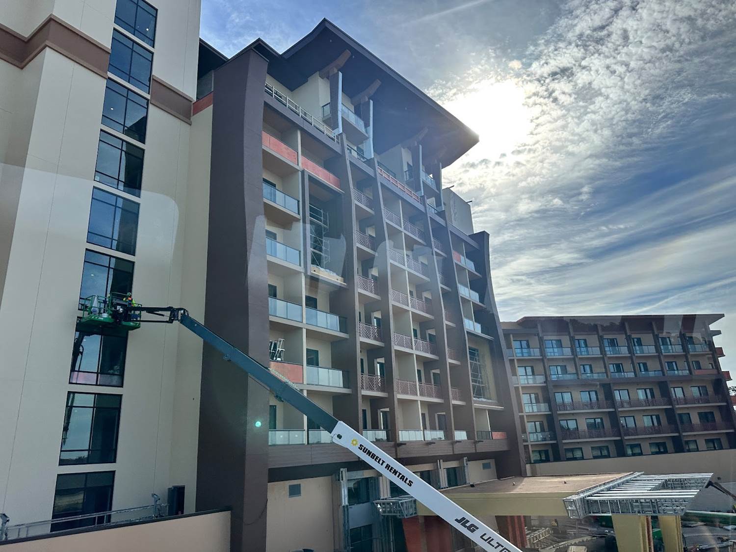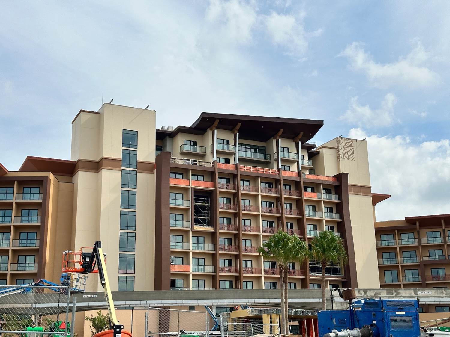 The latest construction progress on the new Island Tower at Disney’s Polynesian Village Resort sees one mural completed with work on another beginning.