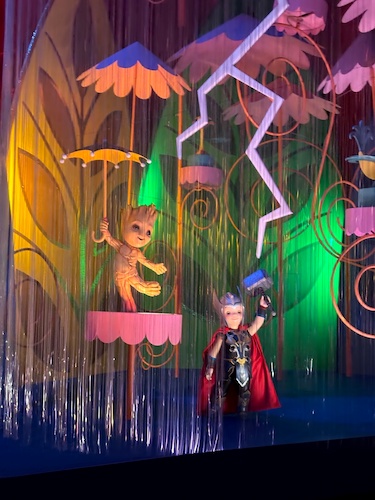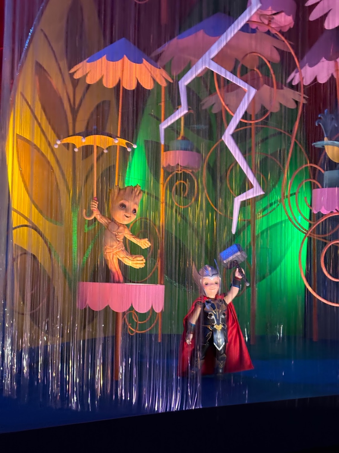 - Groot features in many different outfits and stylings throughout the attraction, alongside many other characters from the Marvel Cinematic Universe. Who do you spot?