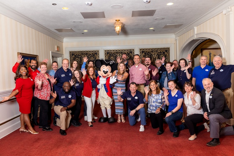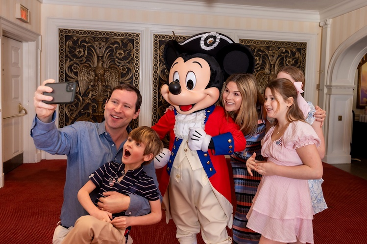 - The group was also greeted by a special guest, Mickey Mouse, dressed in red, white and blue!
