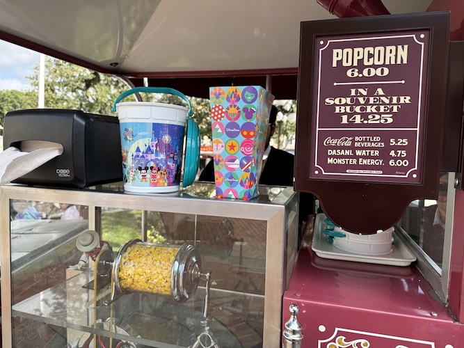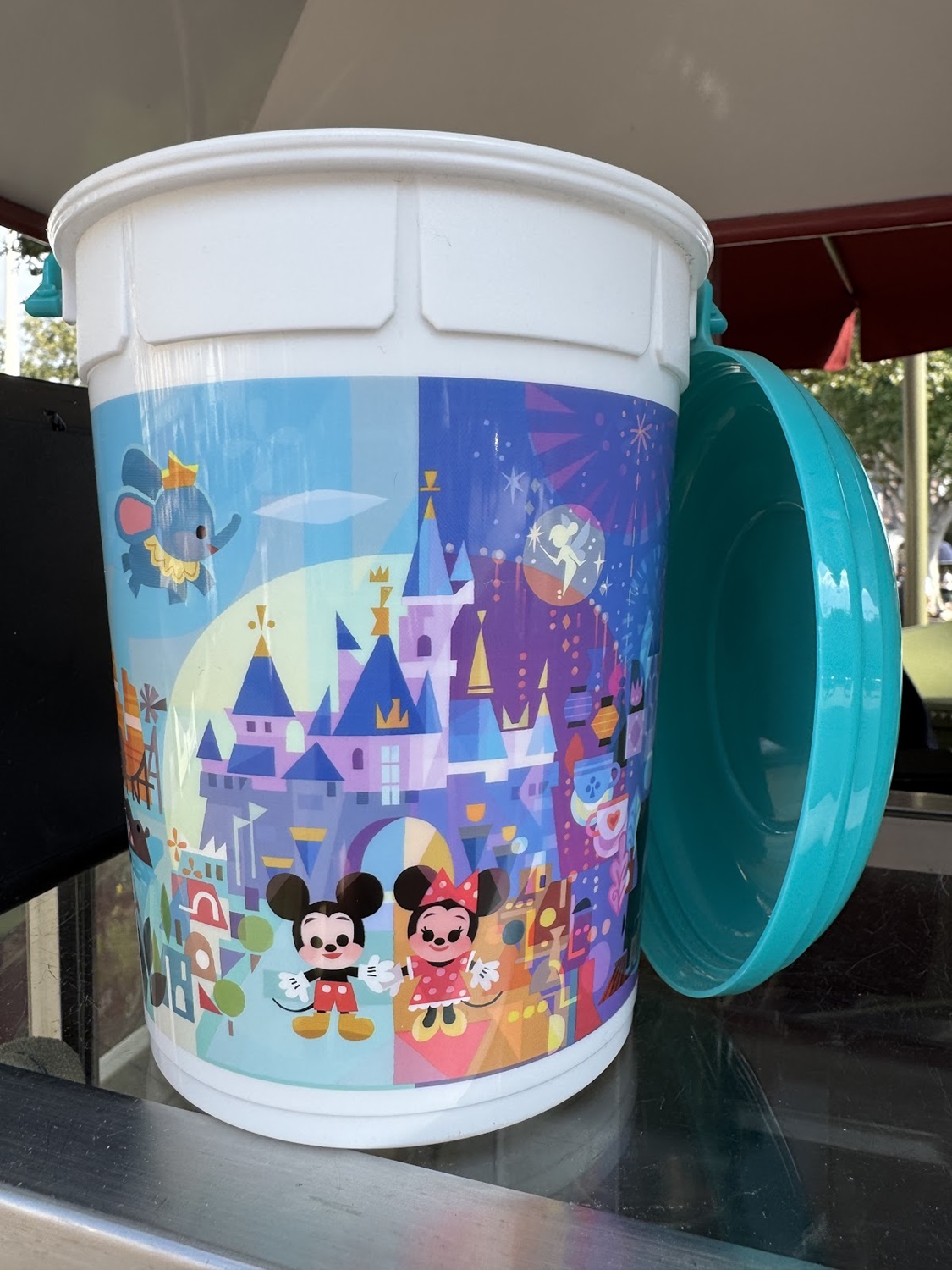 We spotted this bucket at a cart on Main Street U.S.A., where it is selling (as of press time) for $14.25. To visit the park and get your hands on these popcorn buckets, or just visit the Disneyland Resort in general, be sure to reach out to our friends at Mouse Fan Travel who can assist with all your booking needs.