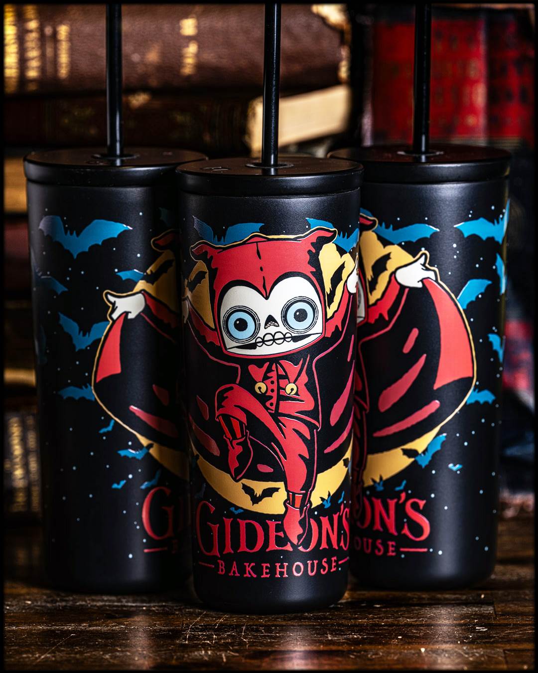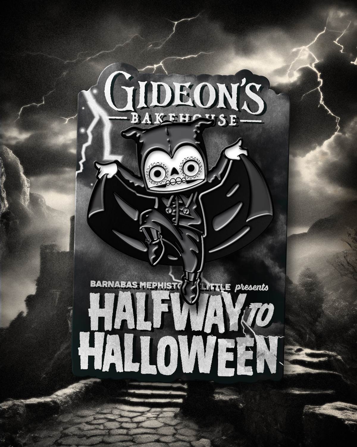 - Barnabas Mephistophelittle Merchandise: Don't miss brand new merchandise featuring Gideon's Halfway to Halloween Ambassador, Barnabas Mephistophelittle, including a collector's pin and 24oz cold brew tumbler!