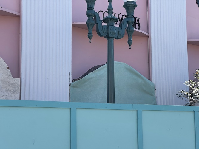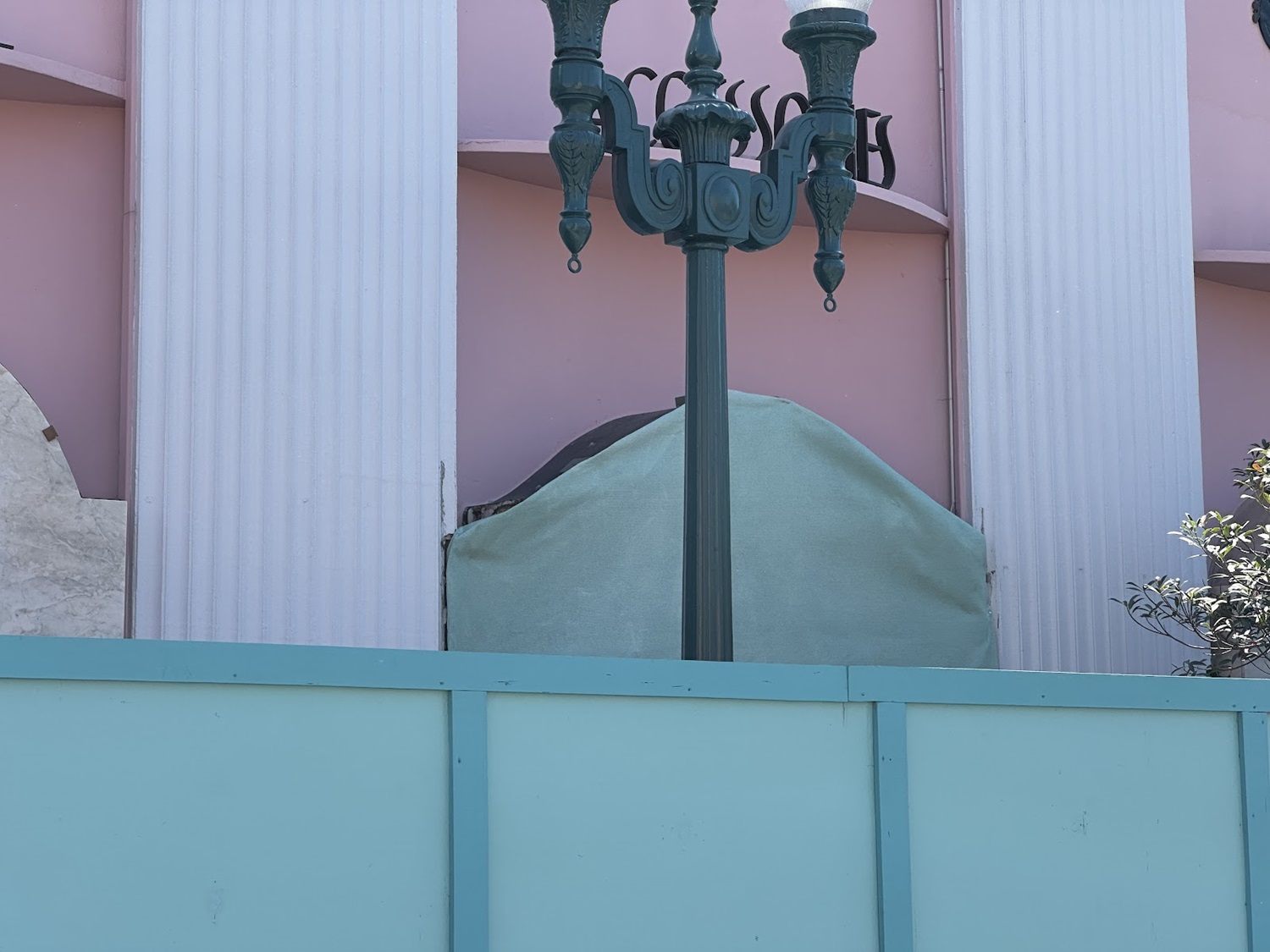 A large wall has appeared on the streets of Hollywood Boulevard, blocking a portion of Keystone Clothiers while work is being done on a doorway and overhang of the popular souvenir shop at Disney’s Hollywood Studios.