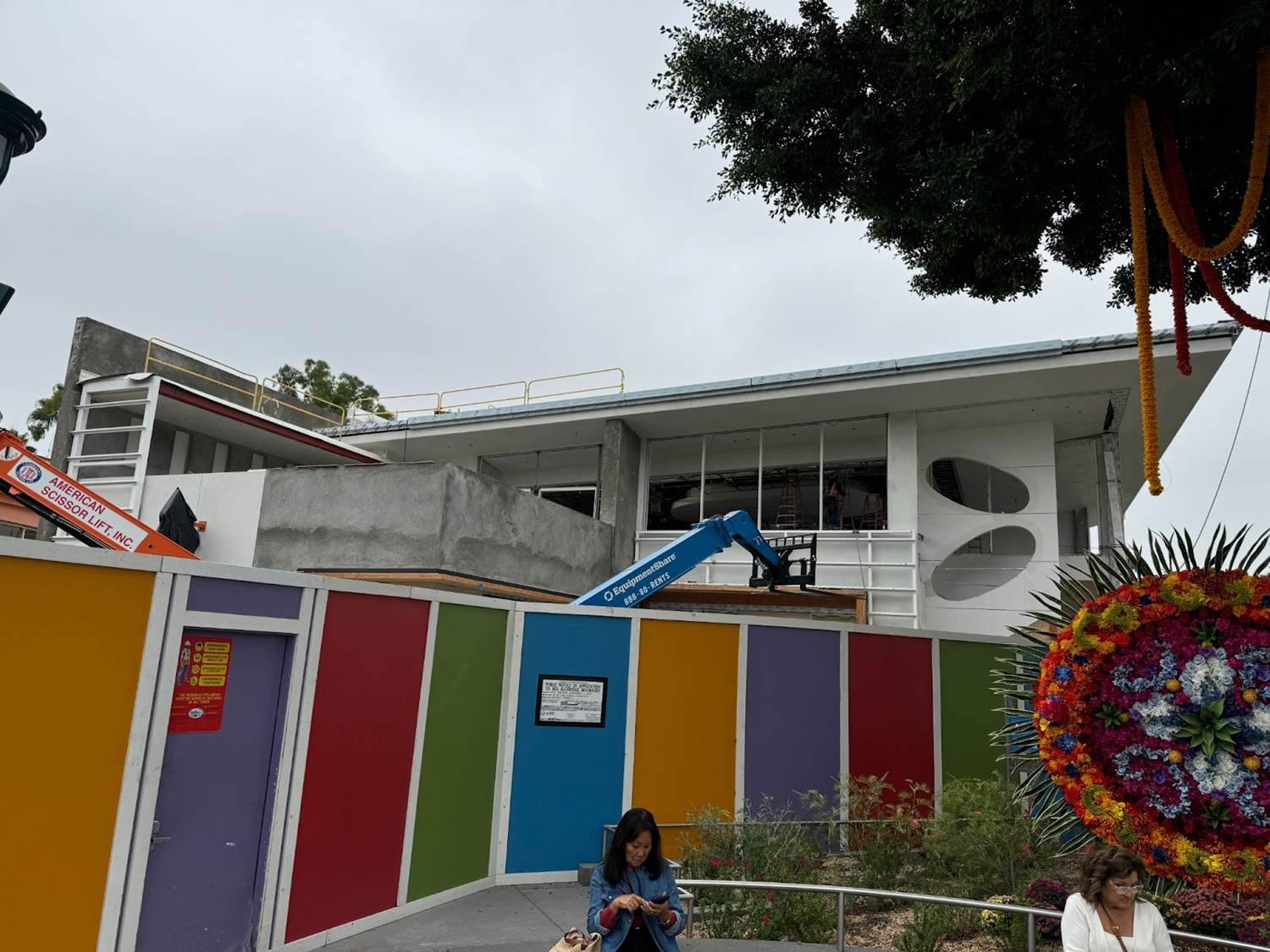 Walls are up around the building brick store at the Downtown Disney District at Disneyland Resort as the location goes under a refurbishment.