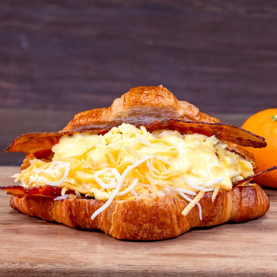 - Bacon & Egg Croissant: Flaky croissant filled with egg, bacon, cheese, and hollandaise sauce (Available for breakfast)