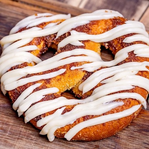 - Cinnamon Roll Pretzel: Cream cheese-filled pretzel topped with cinnamon sugar and cream cheese icing