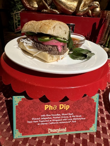 This take on a French Dip sandwich combines rice noodles, sliced beef, shaved jalapenos, pickled onions, and pho broth. You’ll find this new item at Wrapped with Love Marketplace.