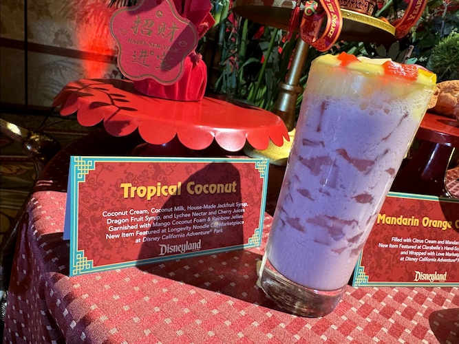 While enjoying all of these amazing foods, don’t forget to grab a sweet drink! This non-alcoholic beverage is made with coconut cream, coconut milk, house-made jackfruit syrup, dragon fruit syrup, lychee nectar and cherry juice topped with mango coconut foam and rainbow jellies. This new item can be found at Longevity Noodle Co. Marketplace.