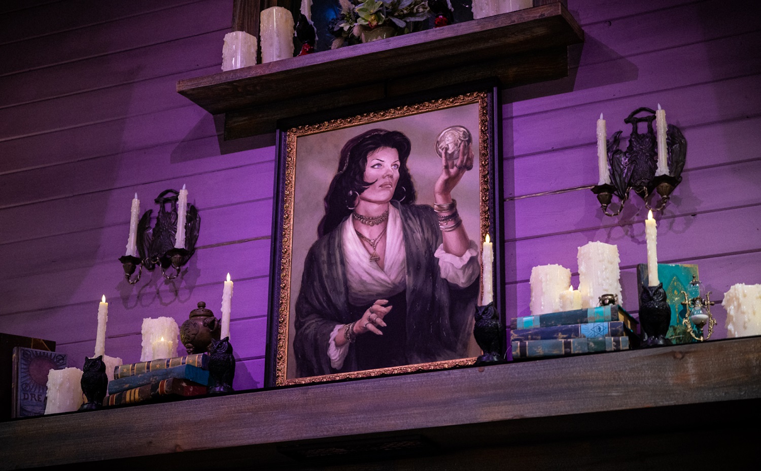- A portrait hangs above the shop honoring Disney Imagineer Leota Toombs Thomas, the Disney Imagineer whose likeness was used to bring Madame Leota to life.