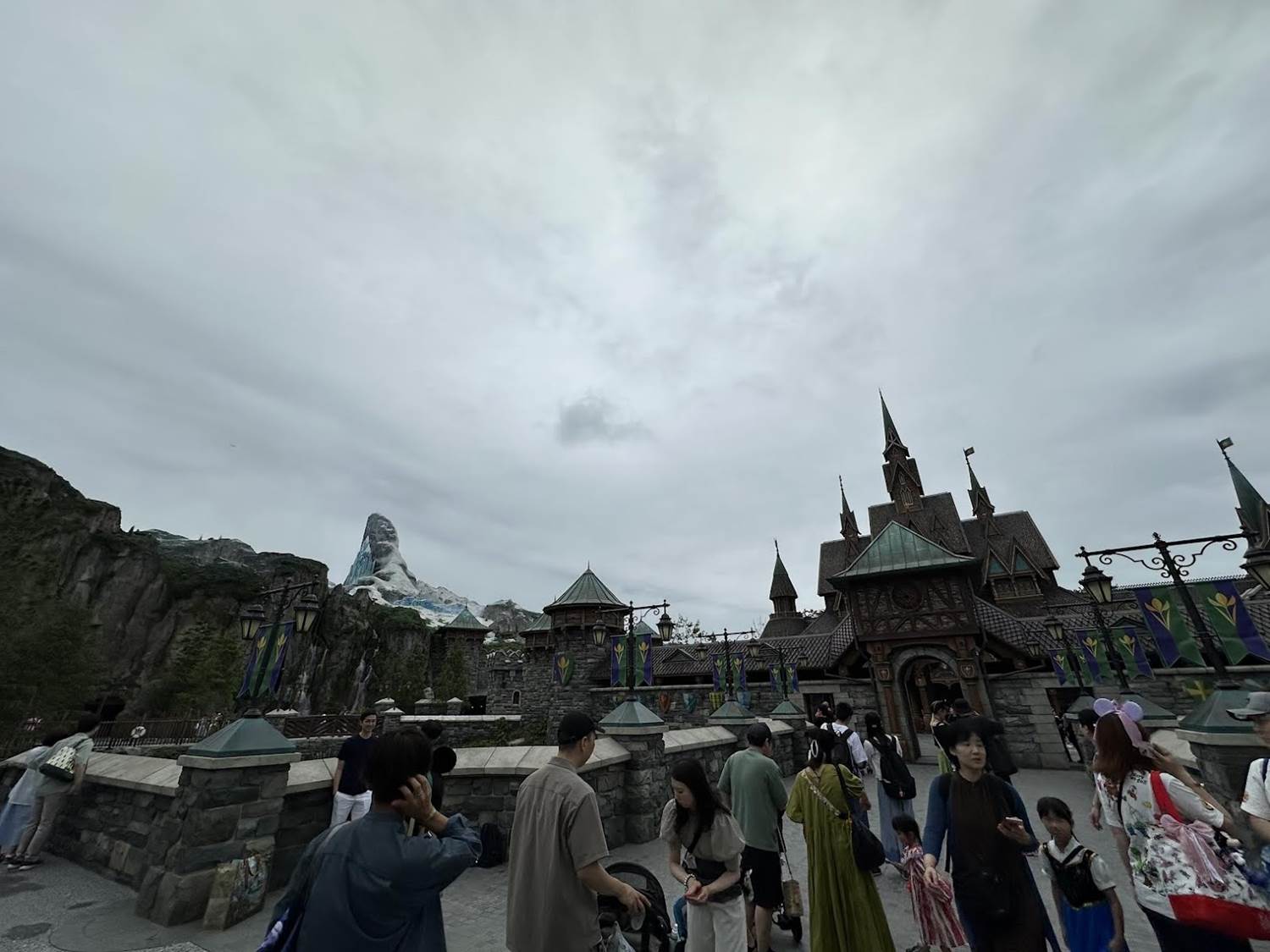 Traveling down the path, you’ll see Frozen Kingdom dominated by Arendelle castle and Elsa’s Ice Palace looming over the surrounding village. Unfortunately, Arendelle village was just a bathroom, but across the bridge you’ll find Anna and Elsa’s Frozen Journey.
