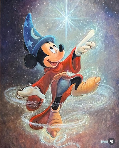 - He will showcase three new pieces inspired by his children’s book, Camp Mickey & Minnie - One Wild Summer, which was released last year and written by the talented Ryan March. Beautiful giclée canvas prints of Swept Up in the Magic! are also available, featuring Mickey's official portrait for his 95th anniversary.