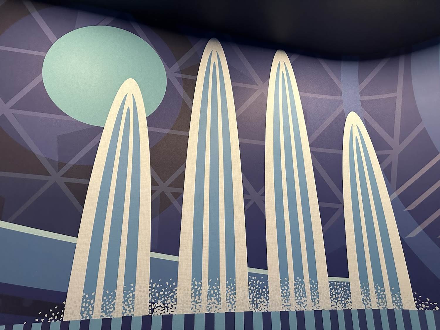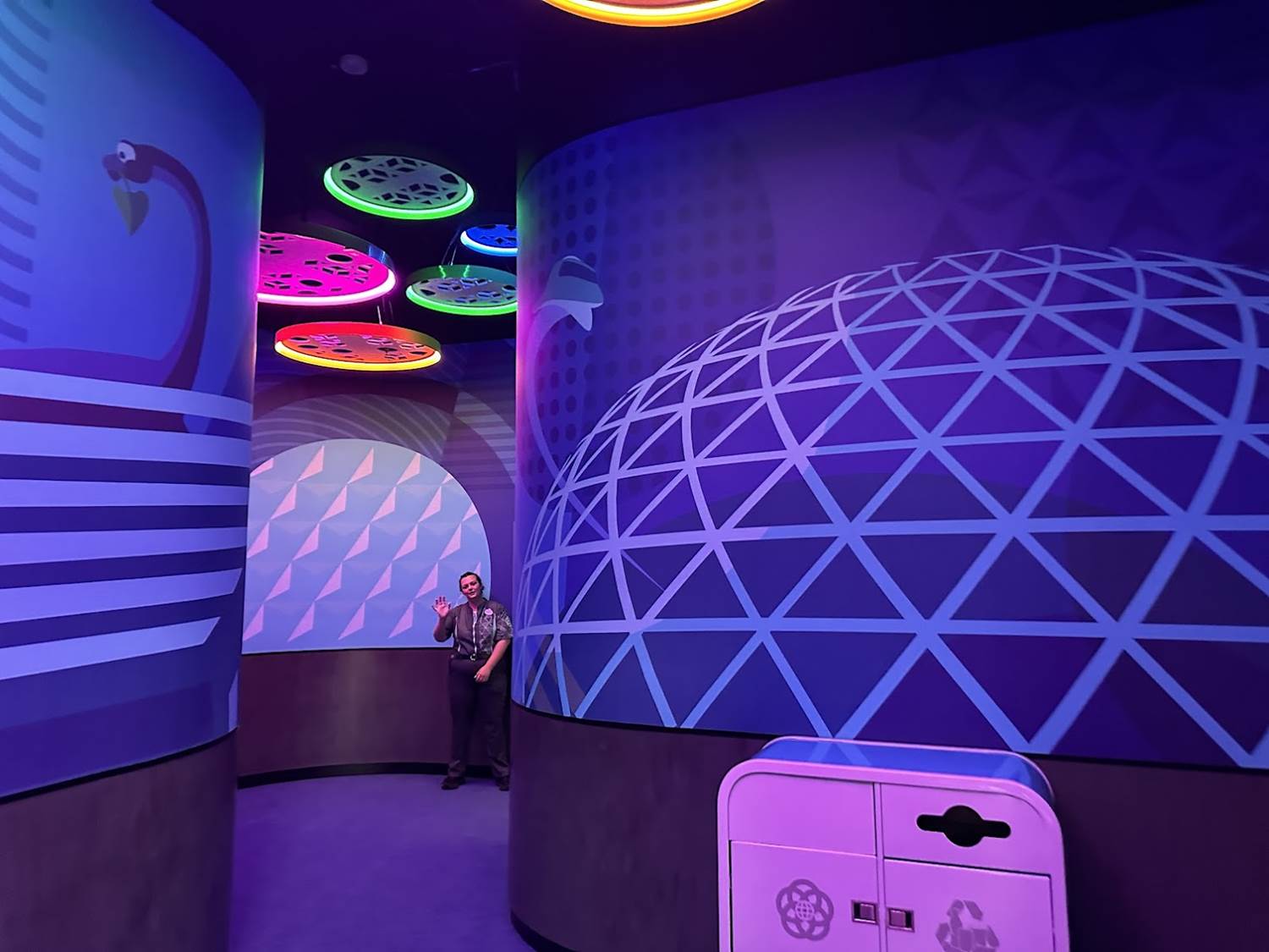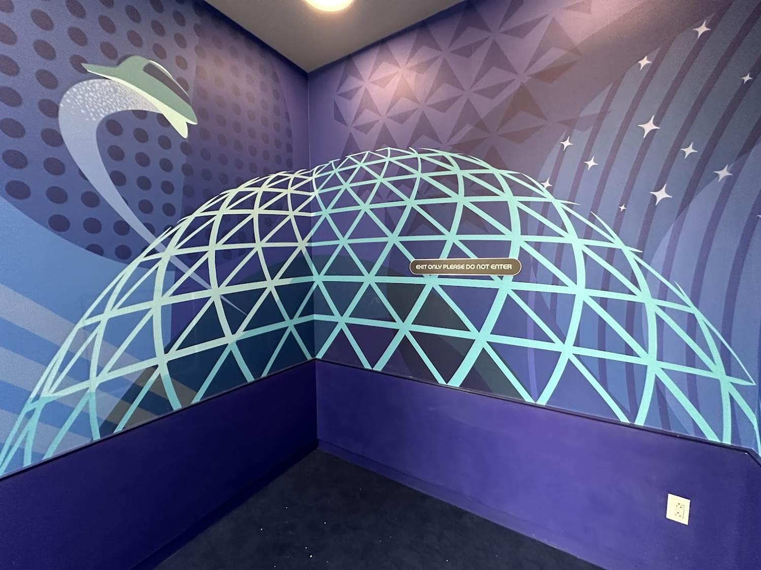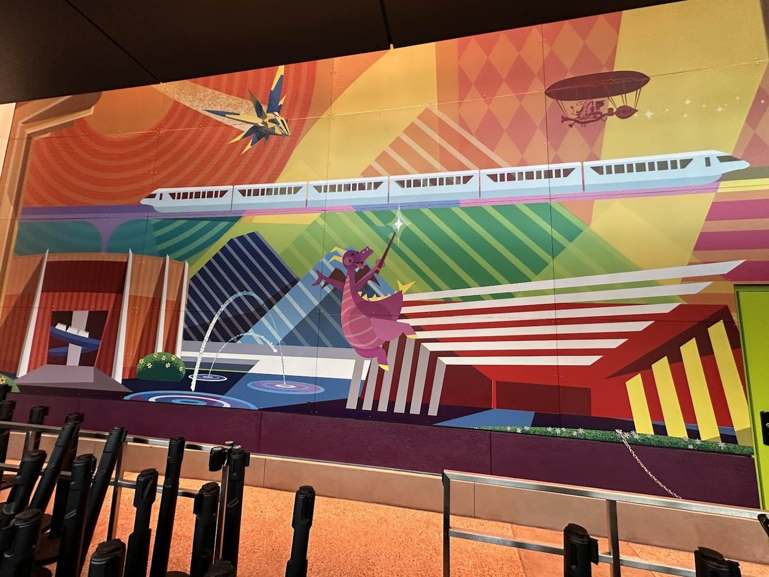Wrapping alongside the side of the building is a gorgeous and colorful mural depicting some Disney friends and a look at EPCOT’s past and present. (I’m a personal fan of the Universe of Energy dino.)