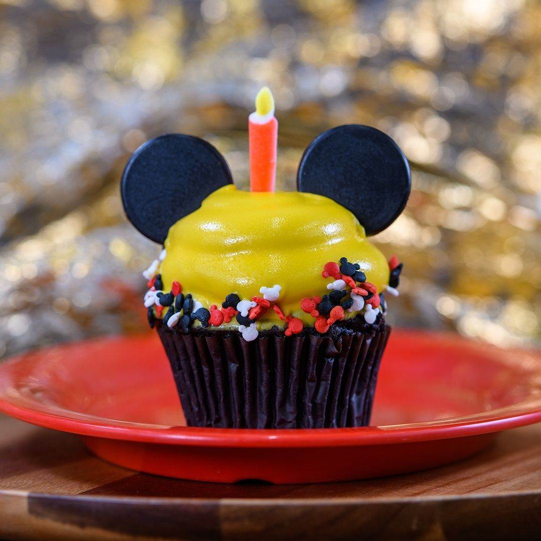 - Mickey Birthday Cupcake: Chocolate cupcake filled with strawberry mousse and strawberry jam finished with milk chocolate mousse, hard chocolate coating, Mickey sprinkles, sugar candle, and chocolate ears