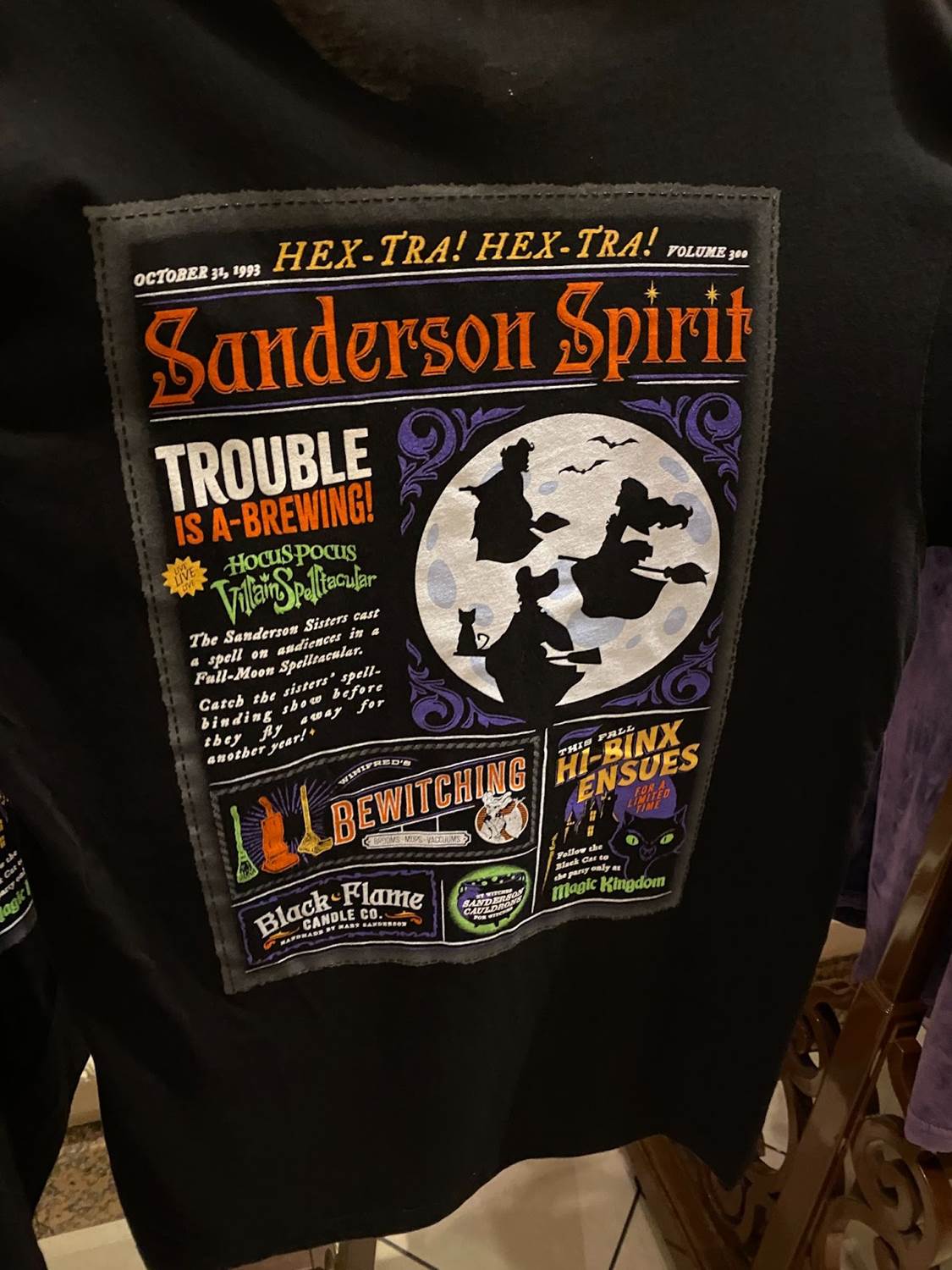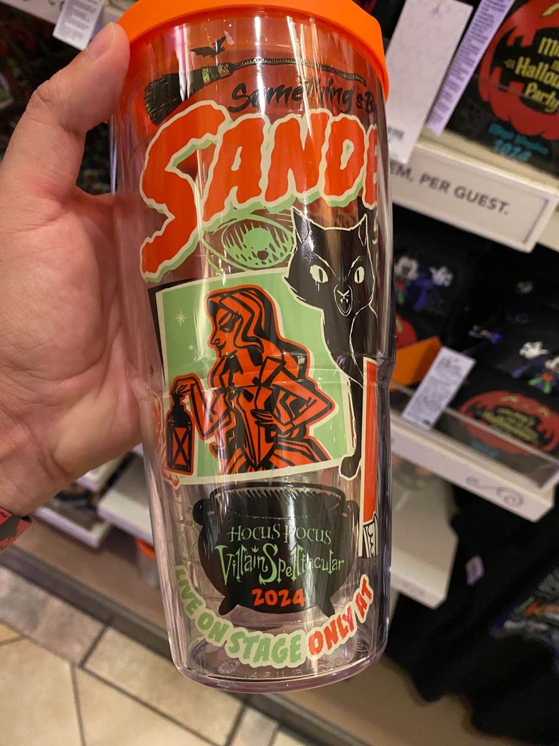 One of the event's most popular offerings is the Hocus Pocus Villain Spectacular castle stage show. For fans of the entertainment option, a T-shirt and a tumbler showcasing the Sanderson sisters are available.