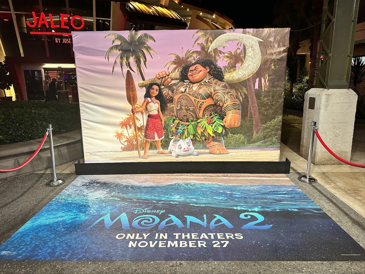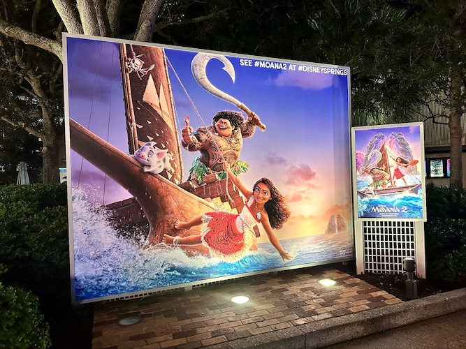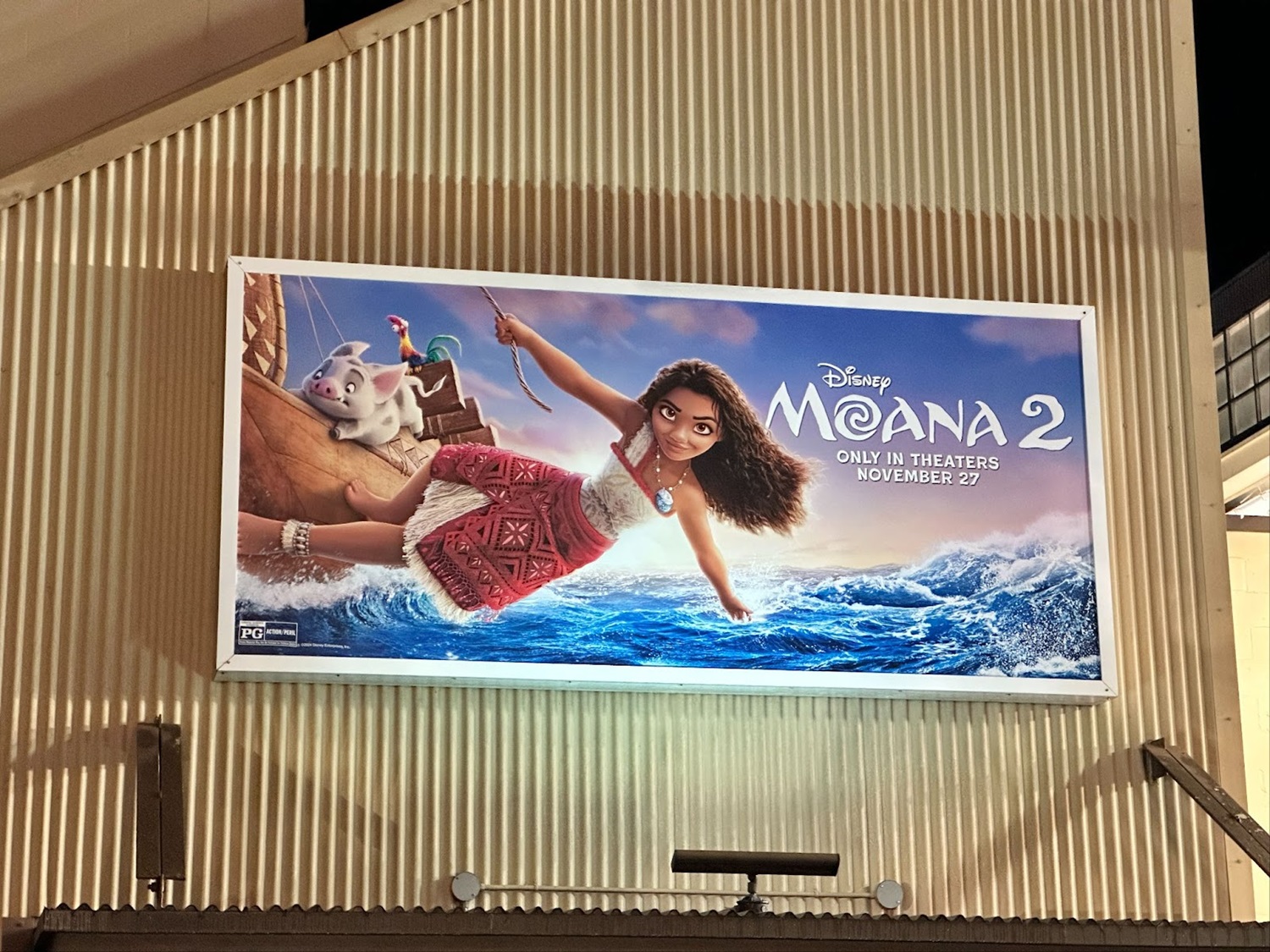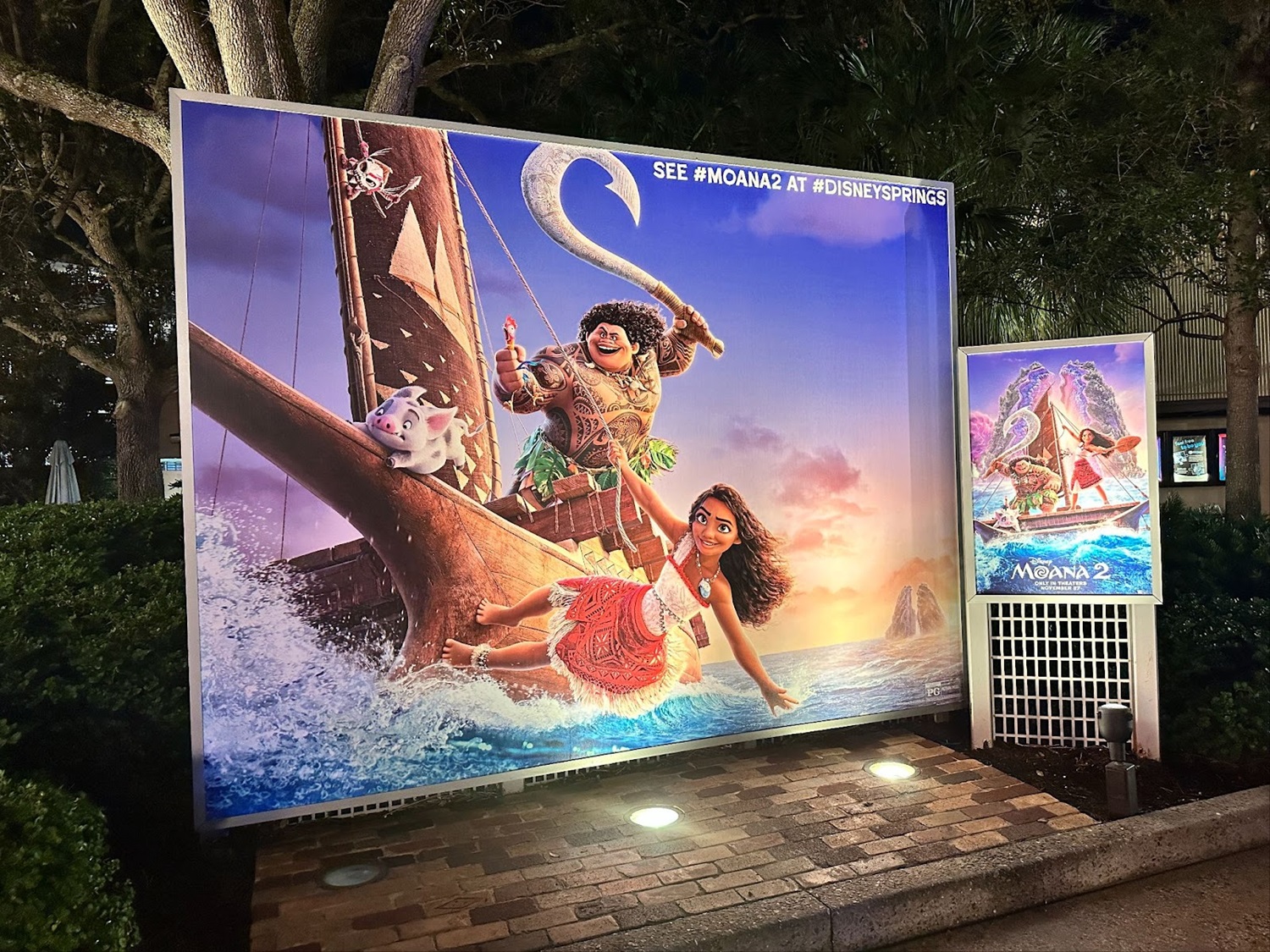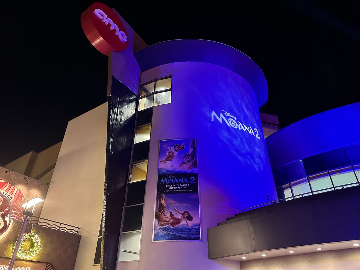The AMC 24 Disney Springs has been adorned with Moana 2 decorations in preparation for the film’s release next week.
