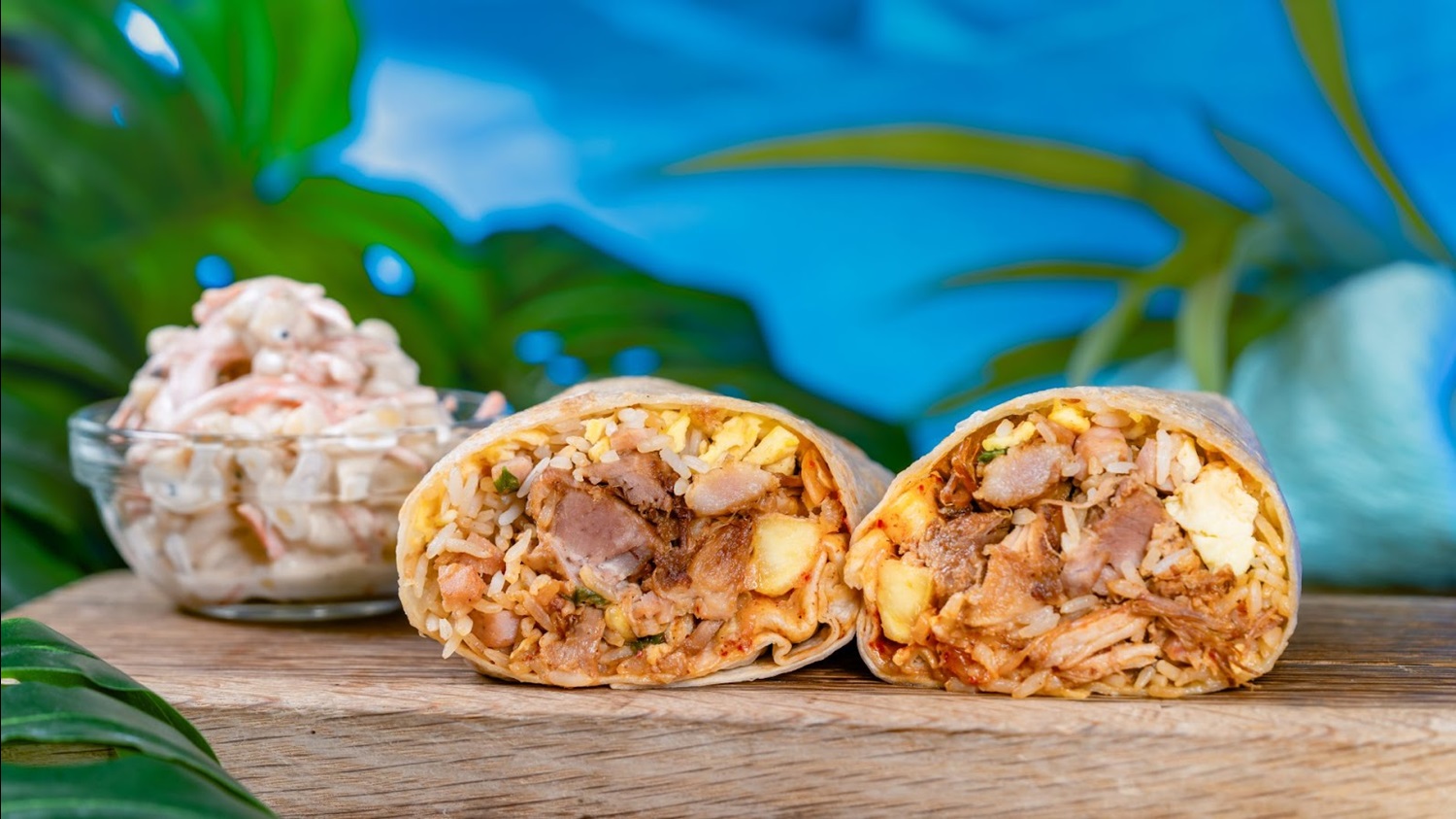 - Boat Snacks Burrito: Kālua-style Pork with spiced ham and egg fried rice, spicy cabbage slaw, and charred pineapple served with Hawaiian mac salad.