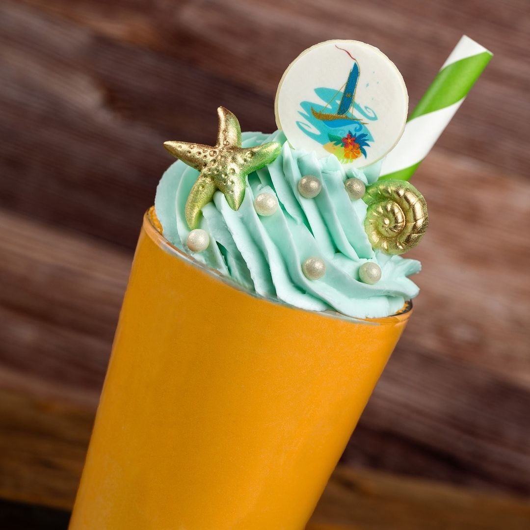 - Moana Milk Shake: Orange cream milk shake with whipped cream, seashells, pearls, and a chocolate coin available at Sunshine Seasons at EPCOT.