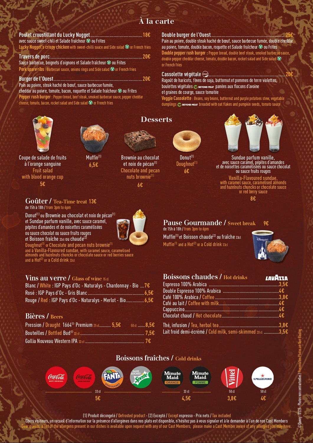New Menu Coming to Lucky Nugget Saloon at Disneyland Paris