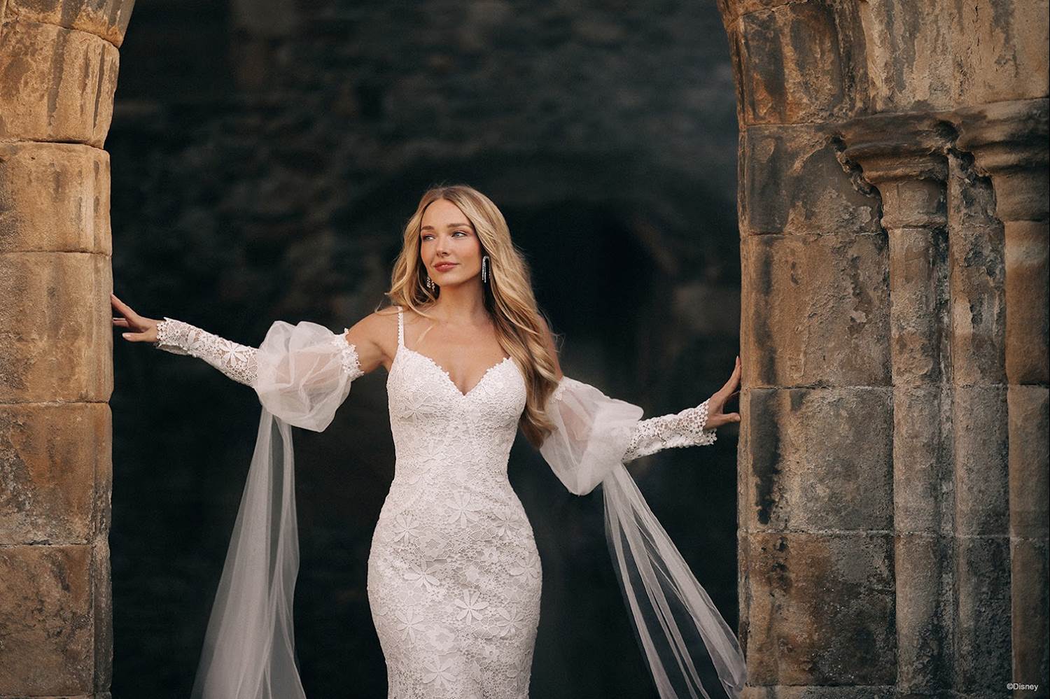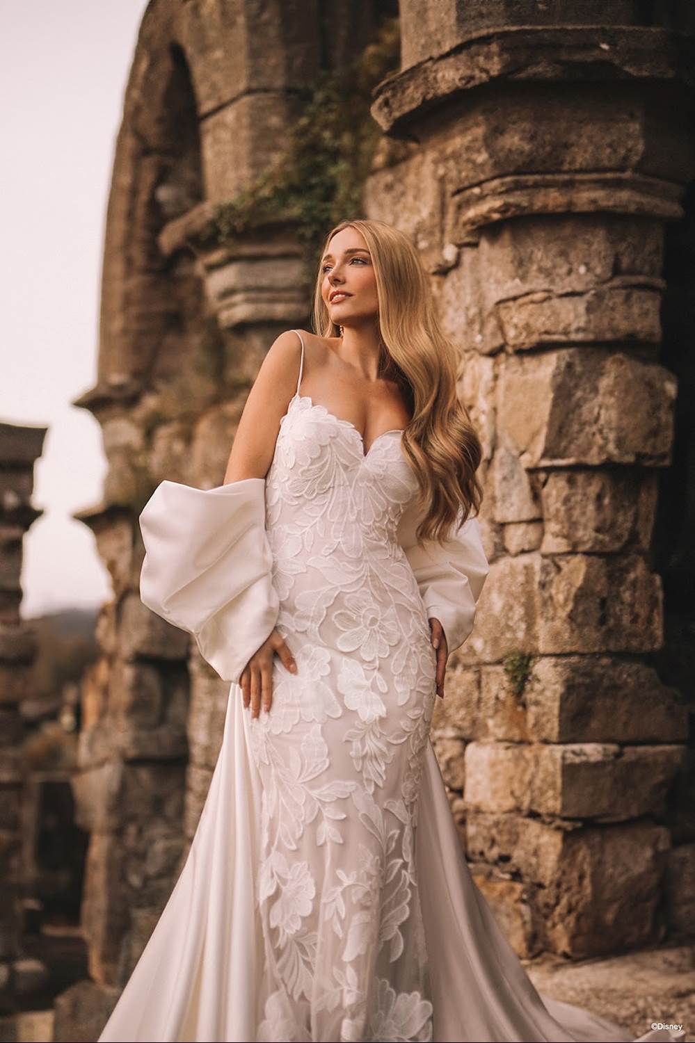 - Disney and Allure Bridals launched their first sophisticated bridal line in 2020, offering stunning, on-trend gowns that showcase the style and spirit of beloved Disney Princess characters. Four years later, Allure Bridals offers options that can transform a bride’s look, such as the detachable overskirts available on a selection of gowns. In addition, the Aurora and Tiana gowns both feature detachable sleeves for a chic, transitional option from aisle to reception. With exquisite details such as ethereal puff sleeves, and dreamy accessories like custom veils and delicate tulle flowers, this new Disney collection offers a dress for every bride’s style.