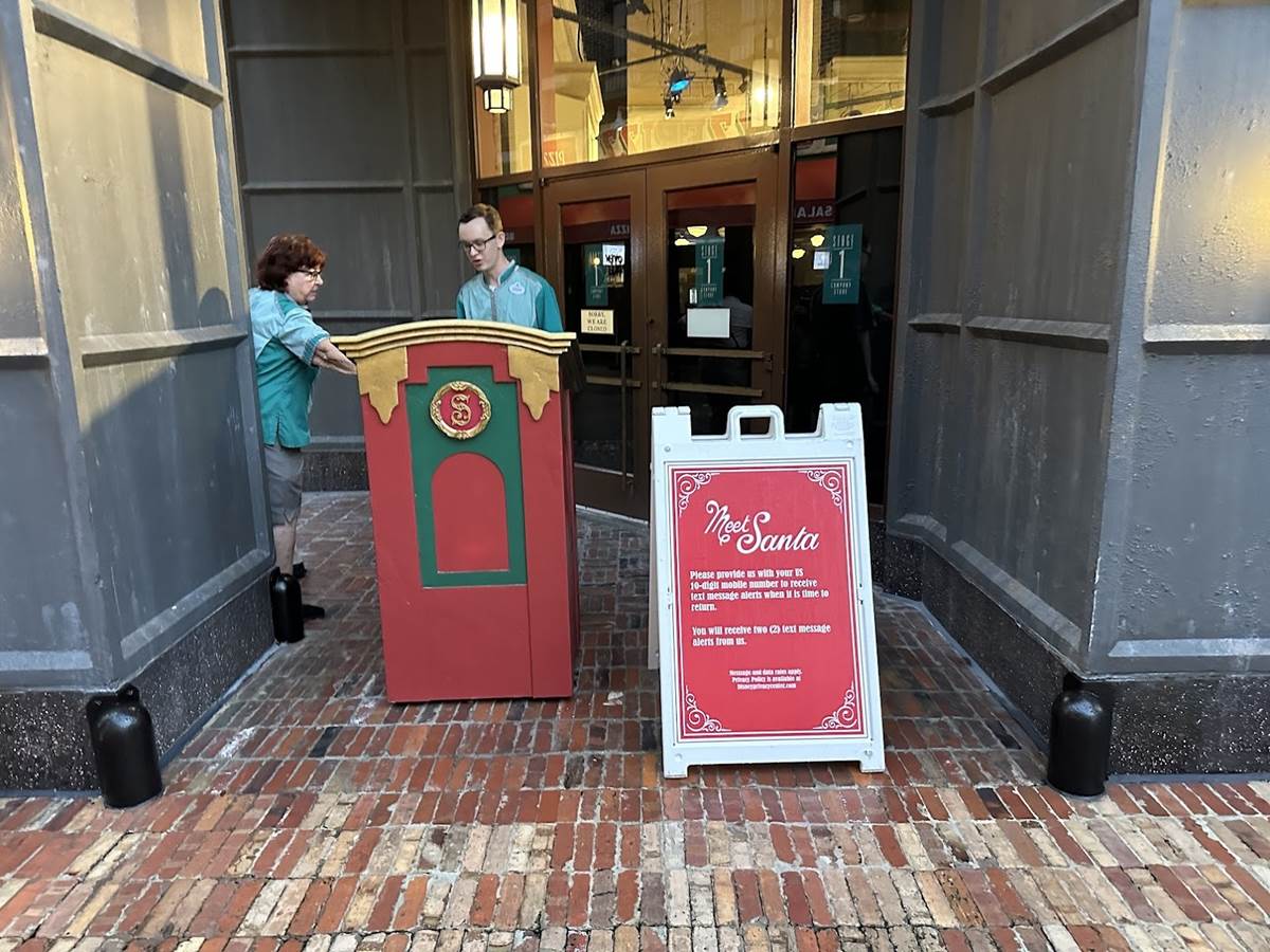 - Guests can head to It’s A Wonderful Shop to sign up for a text message-based return time, which will alert them when they are able to join the line to meet Santa Claus.