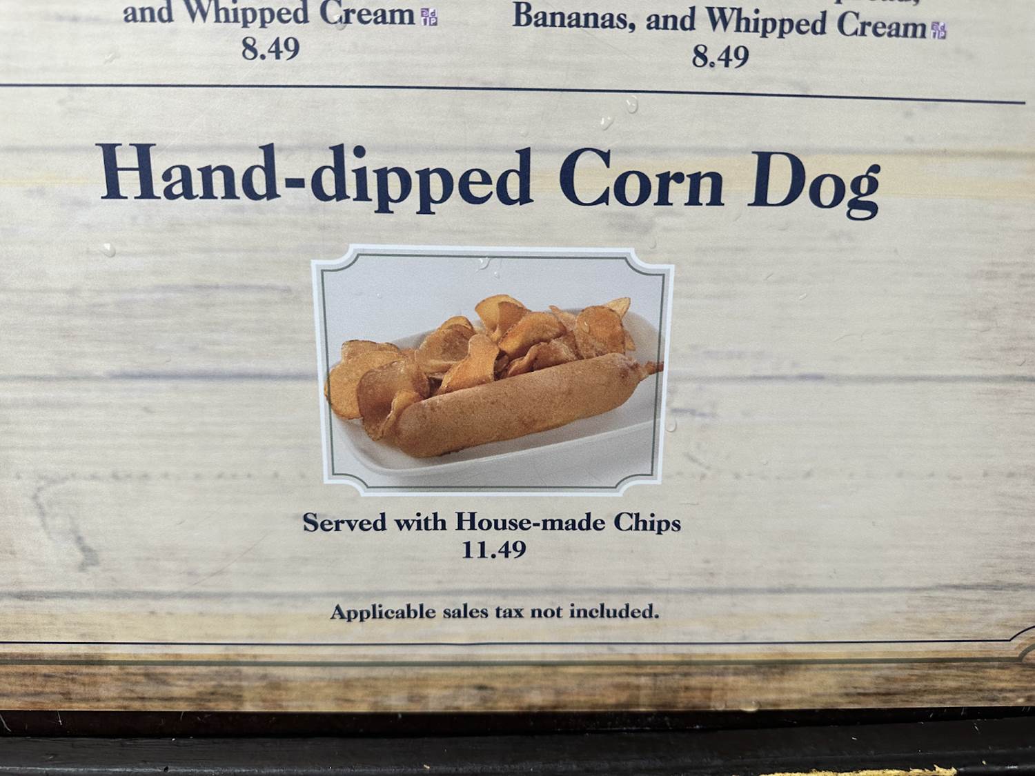 - Guests can also find a Hand-dipped Corn Dog here, served with some delicious house-made chips.