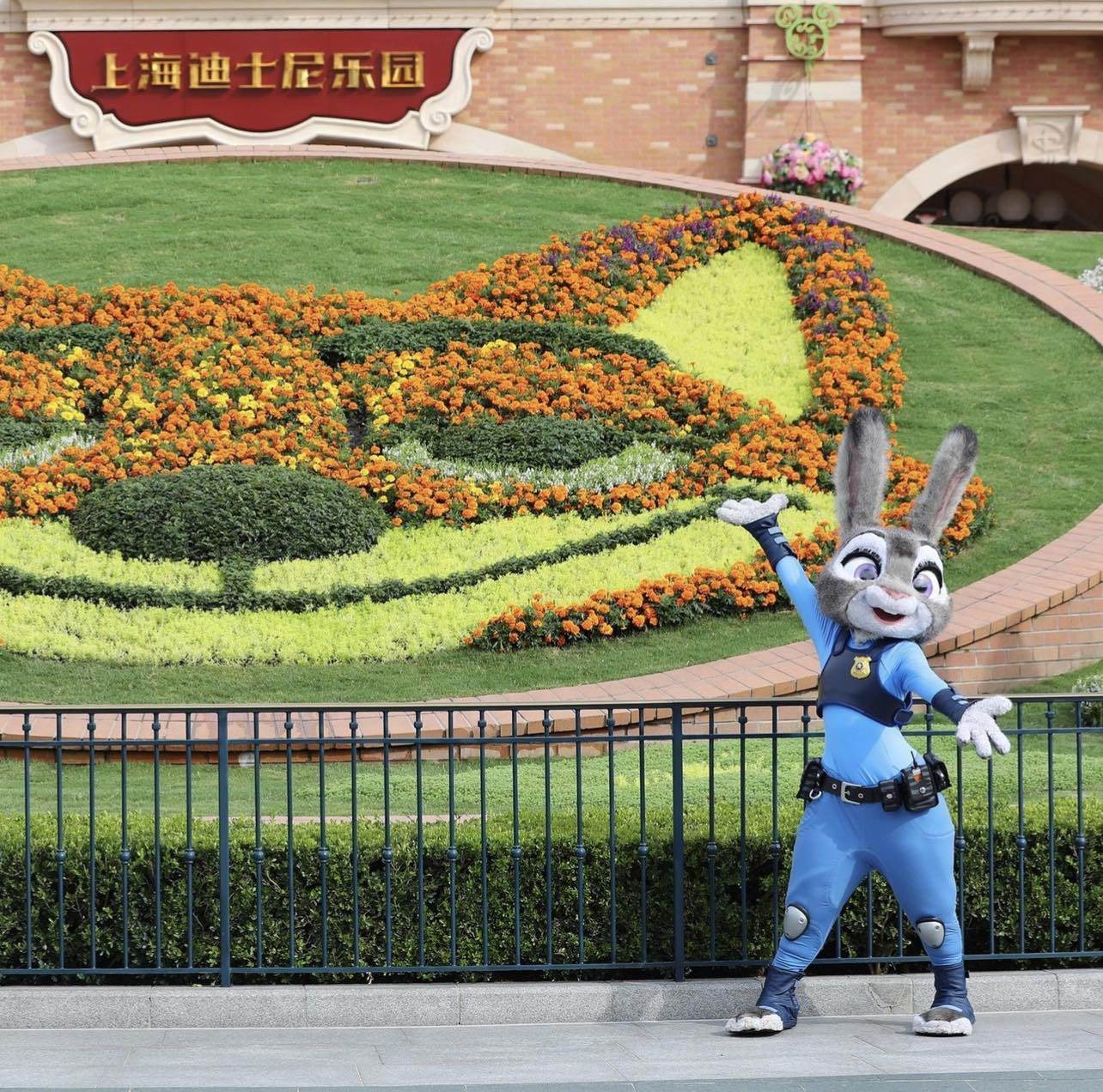 At Shanghai Disneyland, Nick is making a special floral appearance at the entrance to the park. Shanghai Disney Resort shared these photos on their Instagram page.
