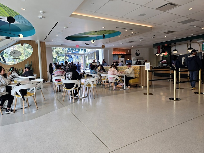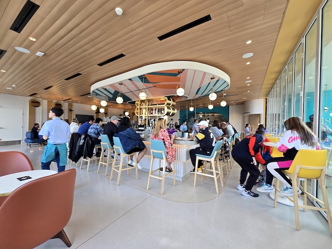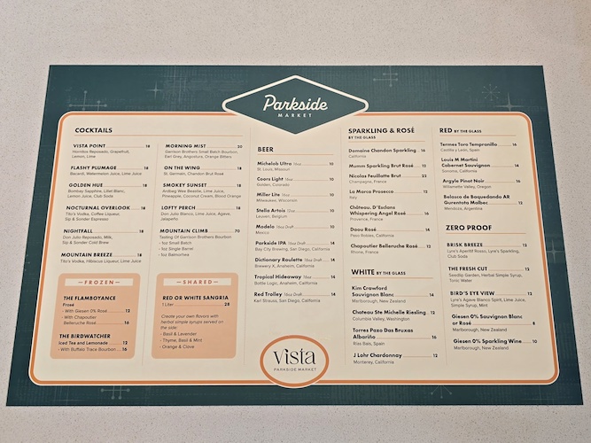Originally promised to open “this winter," many Disneyland fans were expecting this new location to open in 2024, but the doors have opened just after - bringing four distinctive dining locations all under one roof. Vista Parkside Market is a second story bar that offers great views of the district alongside the chance to sip signature craft cocktails and mocktails made with local ingredients and artful garnishes.