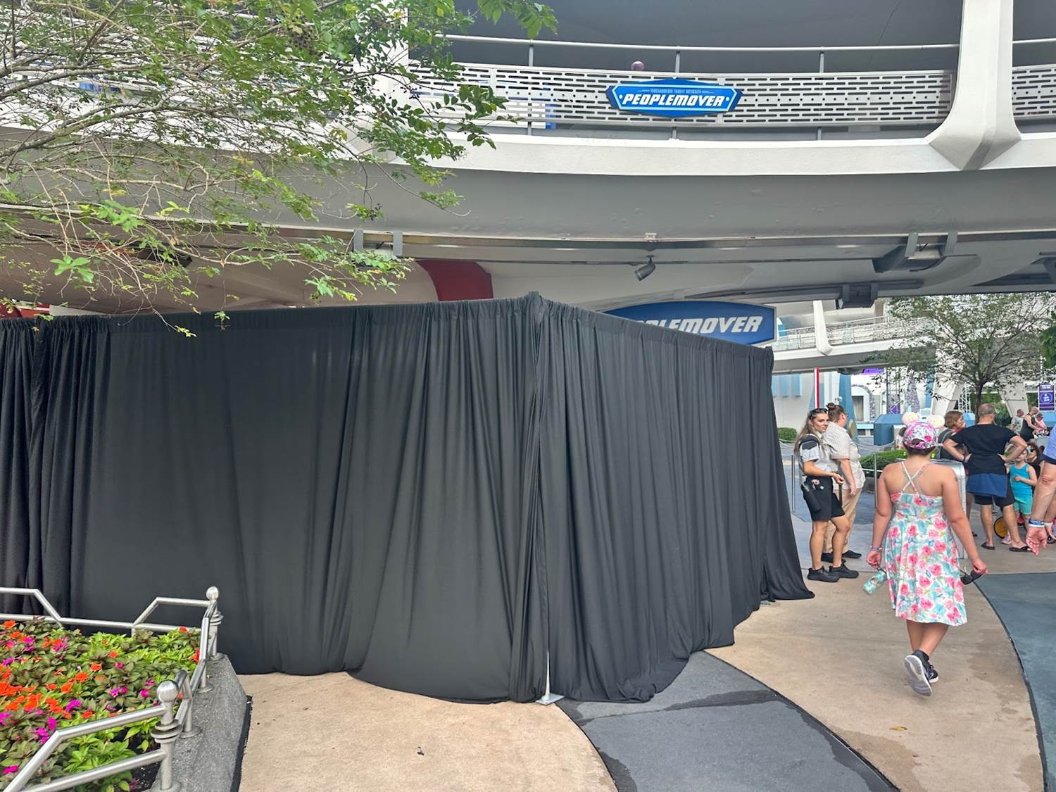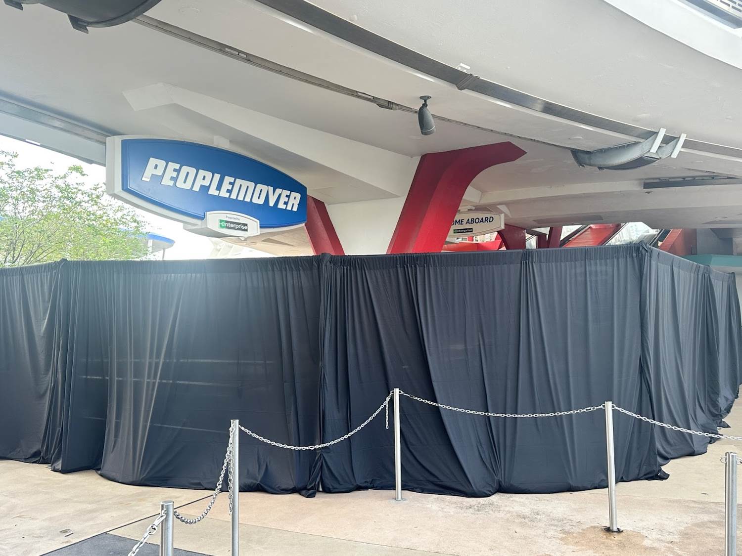 The Tomorrowland Transit Authority PeopleMover has unexpectedly closed at the Magic Kingdom, with black tarps surrounding the entrance to the attraction.
