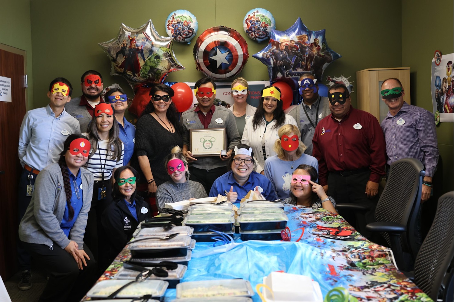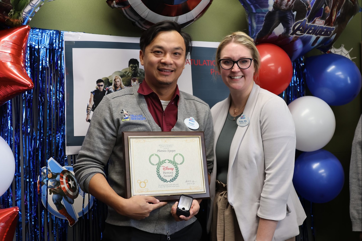 - Presenting Nguyen with the Disney Heroes Award, the Health Services team surprised the honoree with a Marvel themed party.