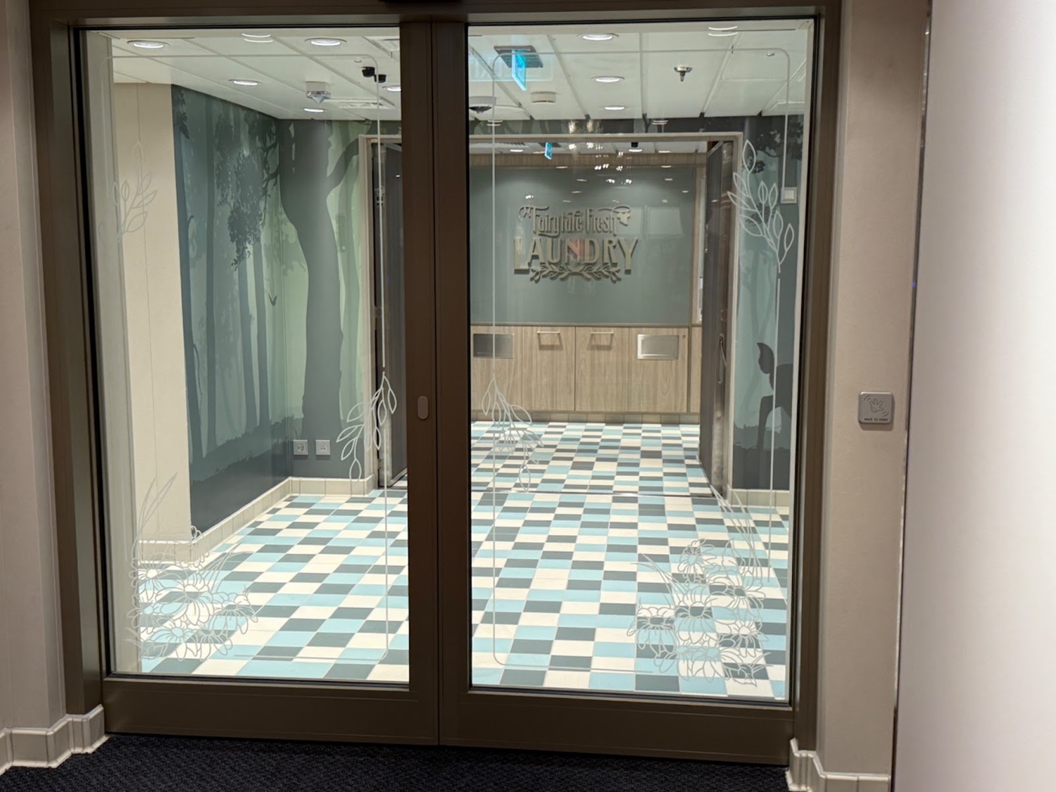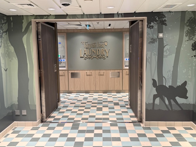 The Fairytale Fresh Laundry on the Disney Treasure is the same name and theming you’ll find aboard the Disney Wish, complete with the Bambi art throughout the area. The Fairytale Fresh Laundry concept – and the size of the laundry room – is much different and more impressive than you’ll find on earlier Disney Cruise ships like the Magic, which have much smaller laundry rooms without any theming to them at all.