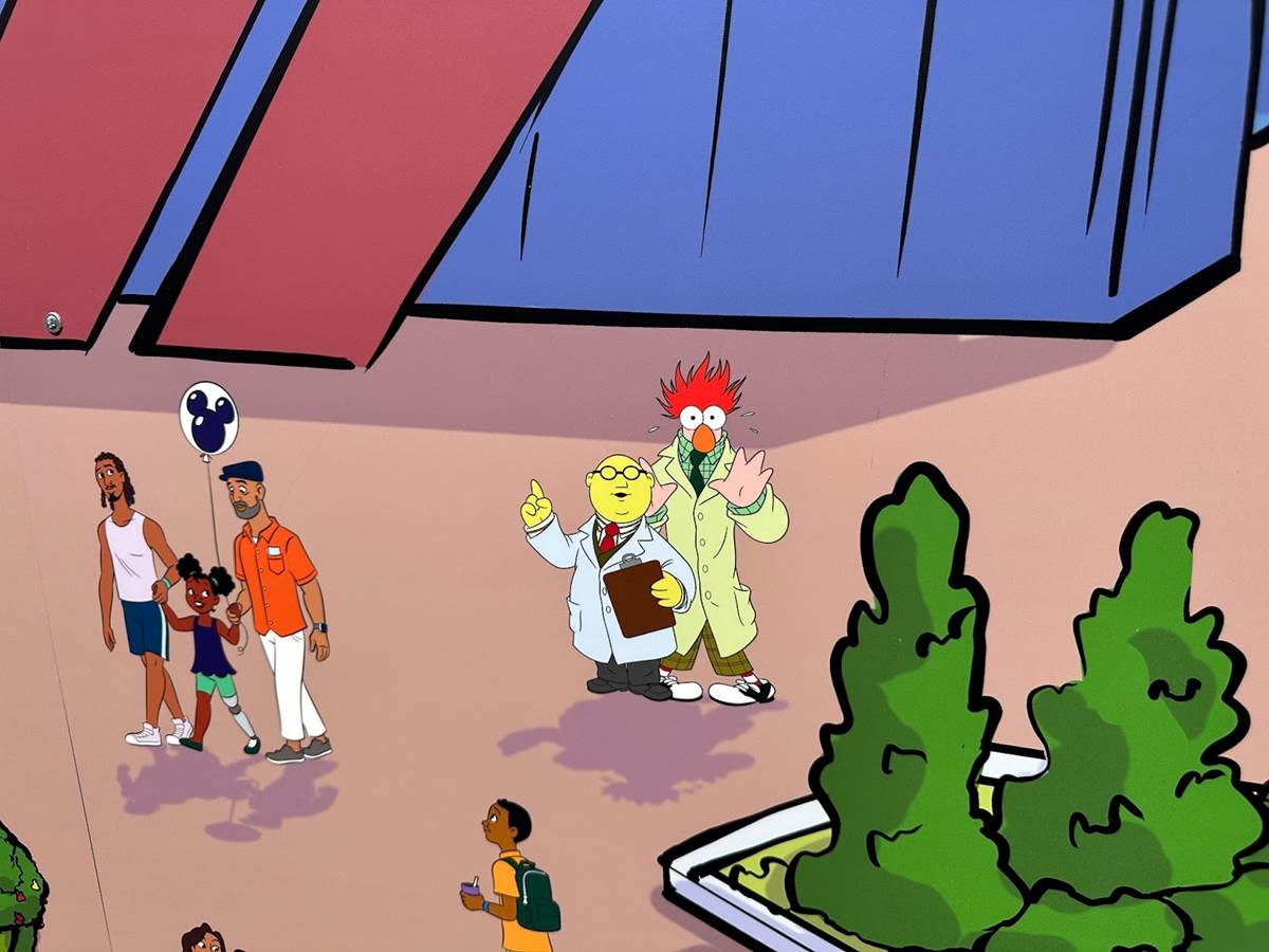 Nearby are Spike the Bee, Dr. Bunsen Honeydew, and his assistant, Beaker.