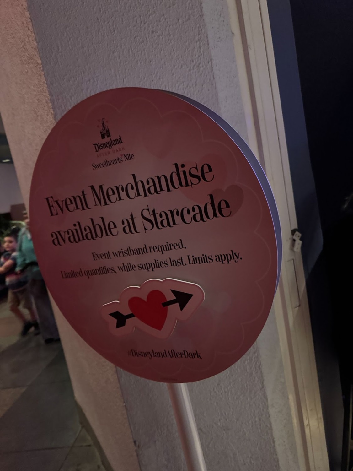 For those looking to pick up merchandise to commemorate their trip to Sweethearts’ Nite, head over to Starcade in Tomorrowland to explore a selection of exclusive merchandise celebrating the season of love. Event wristbands are required to enter the popup store.