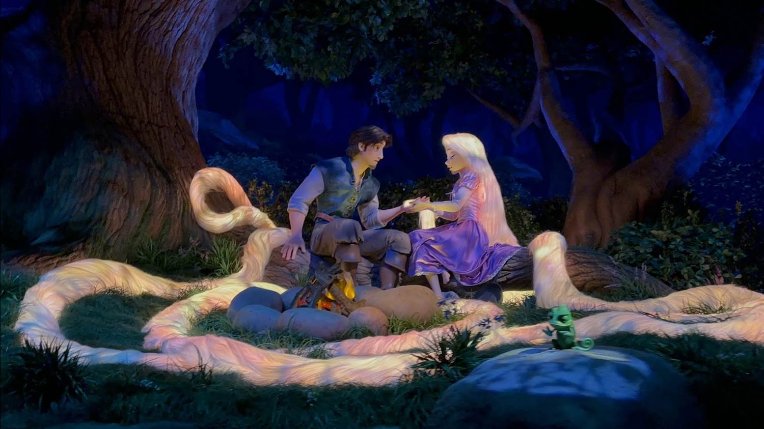 The boat ride takes guests through Rapunzel’s story, utilizing start-of-the-art audio-animatronics and gorgeous effects.
