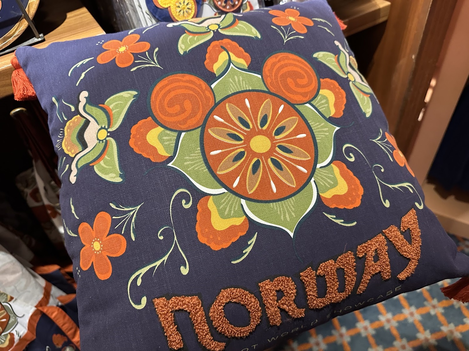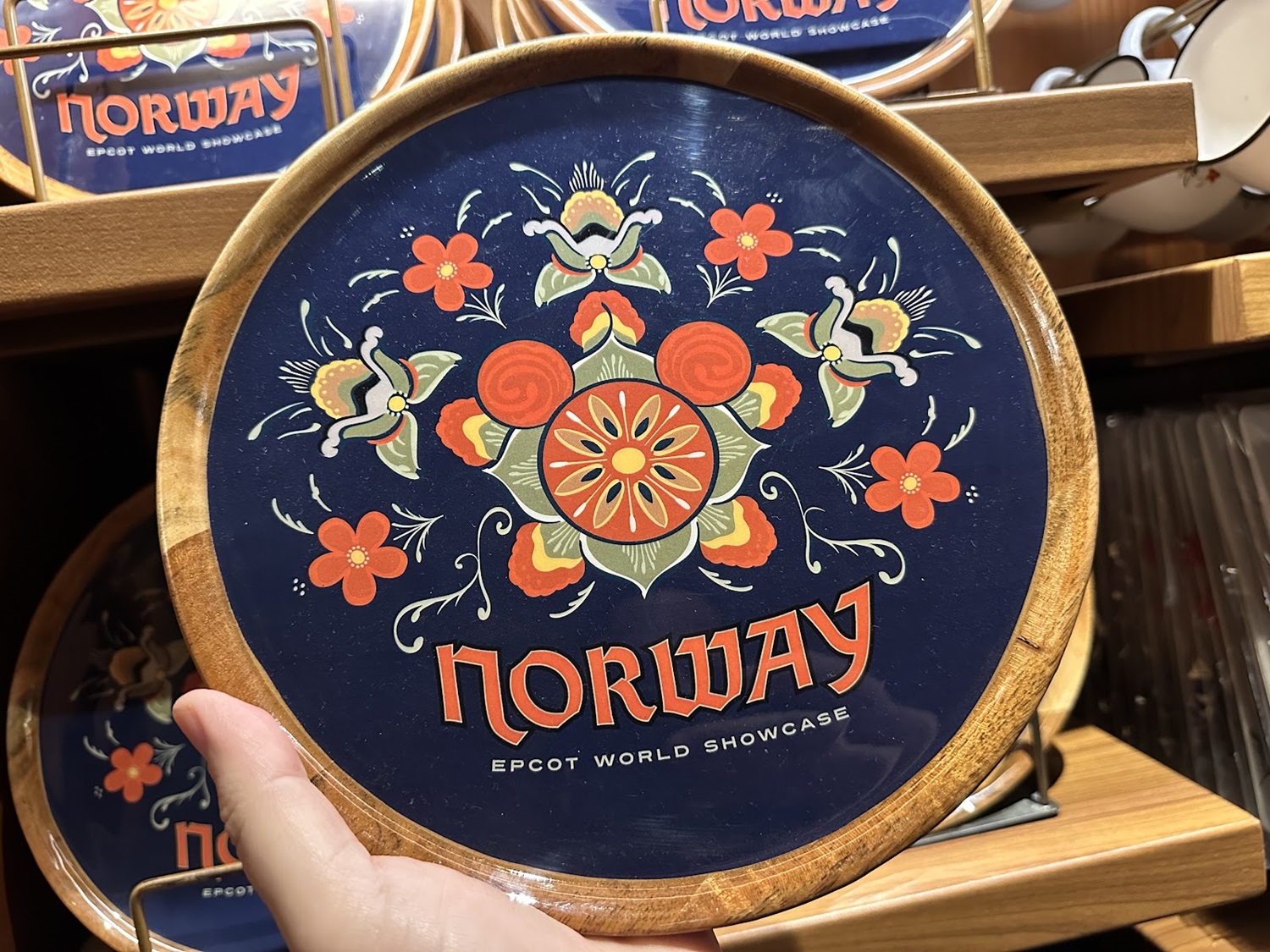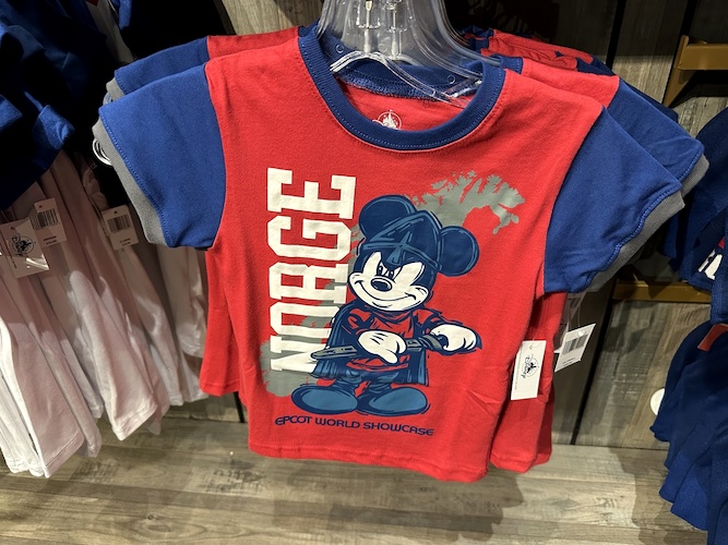 A line that features a more traditional look, especially when compared to merchandise found throughout the other World Showcase pavilions. This line also includes the Norway flag in the shape of a Mickey Mouse head, similar to the other pavilions as well.
