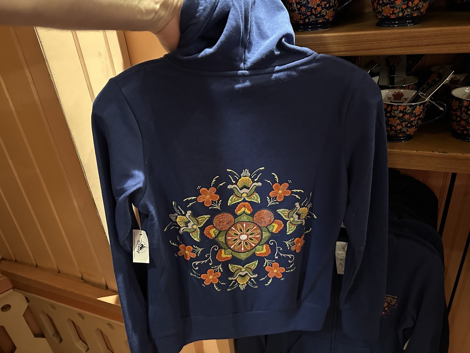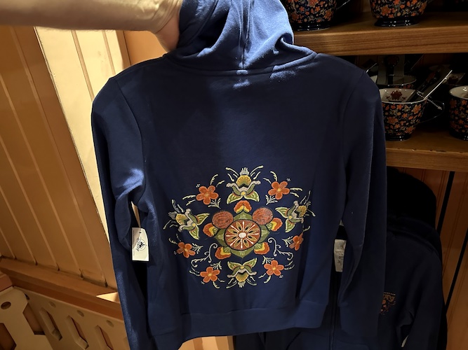 These items feature a decidedly different color scheme than the previous lines as well, focusing more on the flora one might find not just in the pavilion, but in Norway itself. Some might even say the florals are inspired by textiles in Frozen, but those textiles were themselves inspired by many cultural outfits and wardrobes found in Norway.