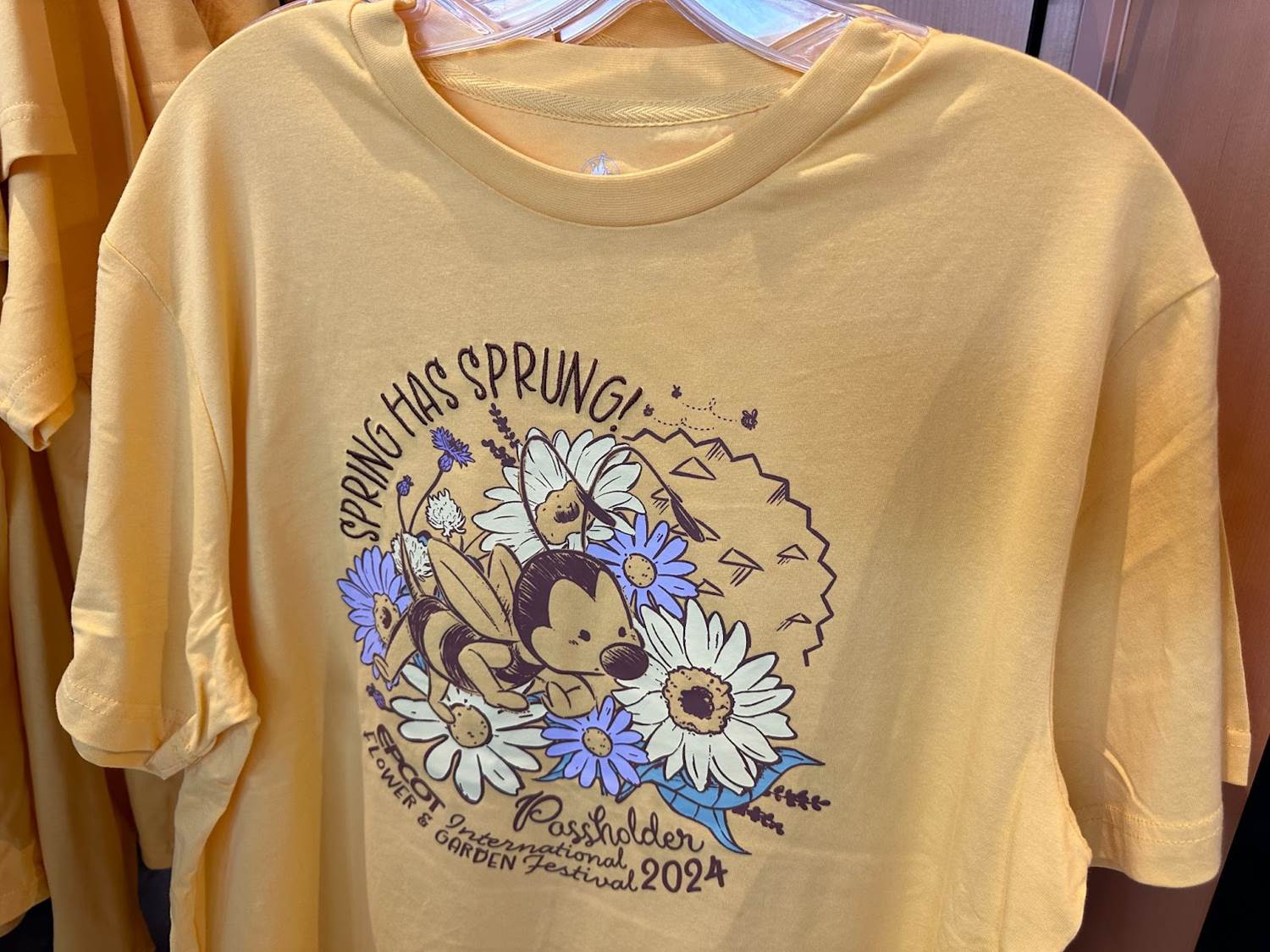 More EPCOT International Flower & Garden Festival merchandise can also be found, featuring colorful designs highlighting bees and butterflies. Spike the Bee can also be found on a new Annual Passholder shirt.