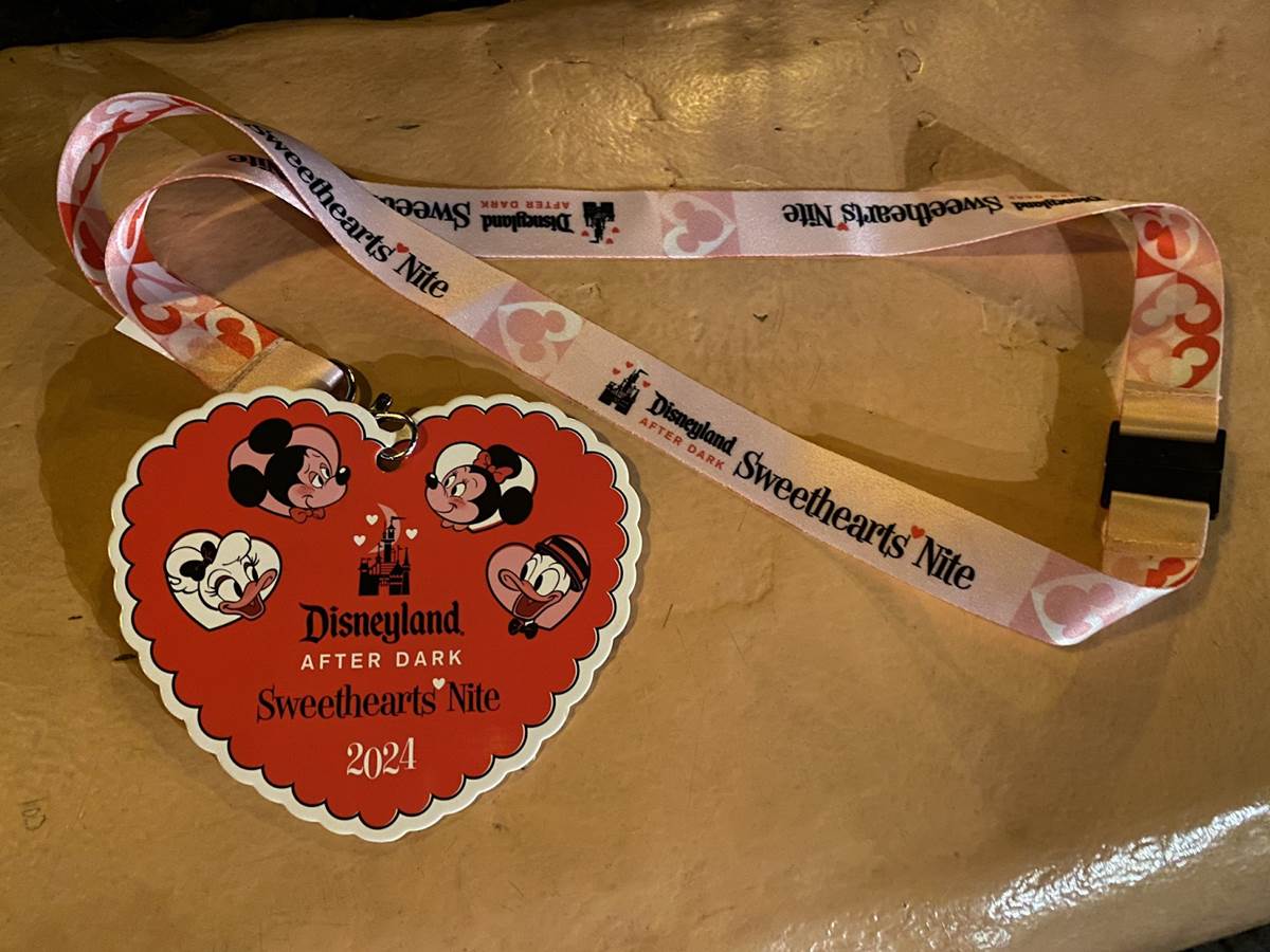 Love was in the air tonight at Disneyland, during the first Sweethearts’ Nite of 2024, as part of the ongoing Disneyland After Dark after-hours ticketed event series. We’ll begin our Sweethearts’ Nite coverage with a look at the event credentials, as well as special merchandise and food offerings.