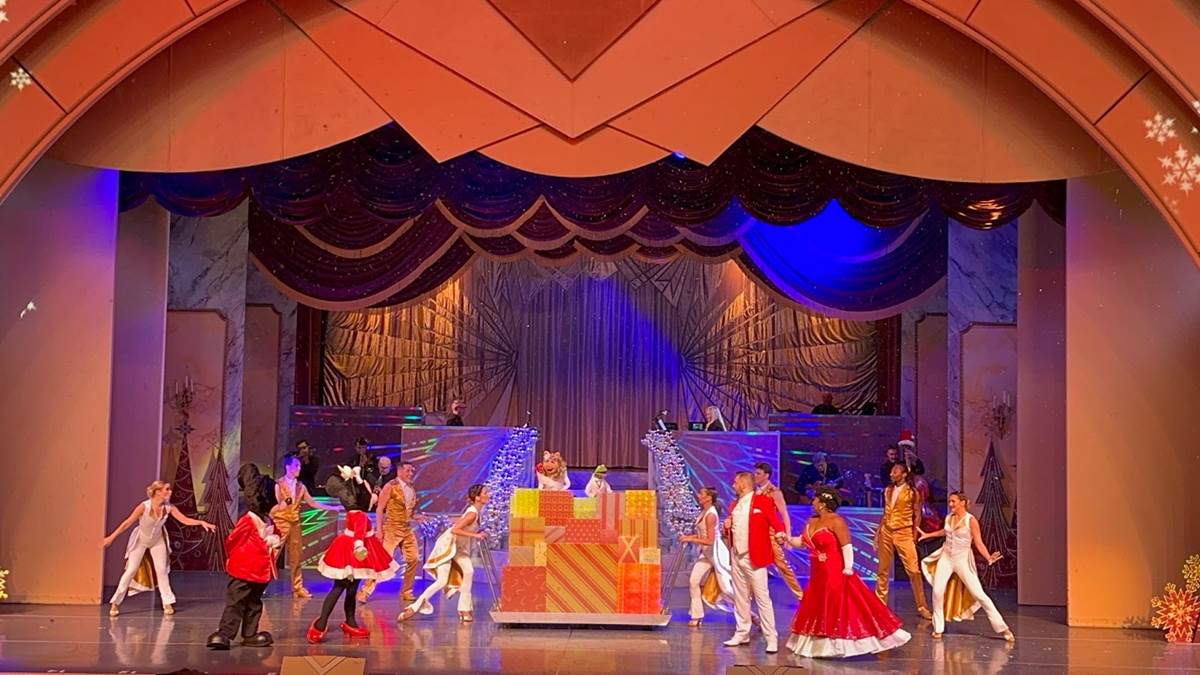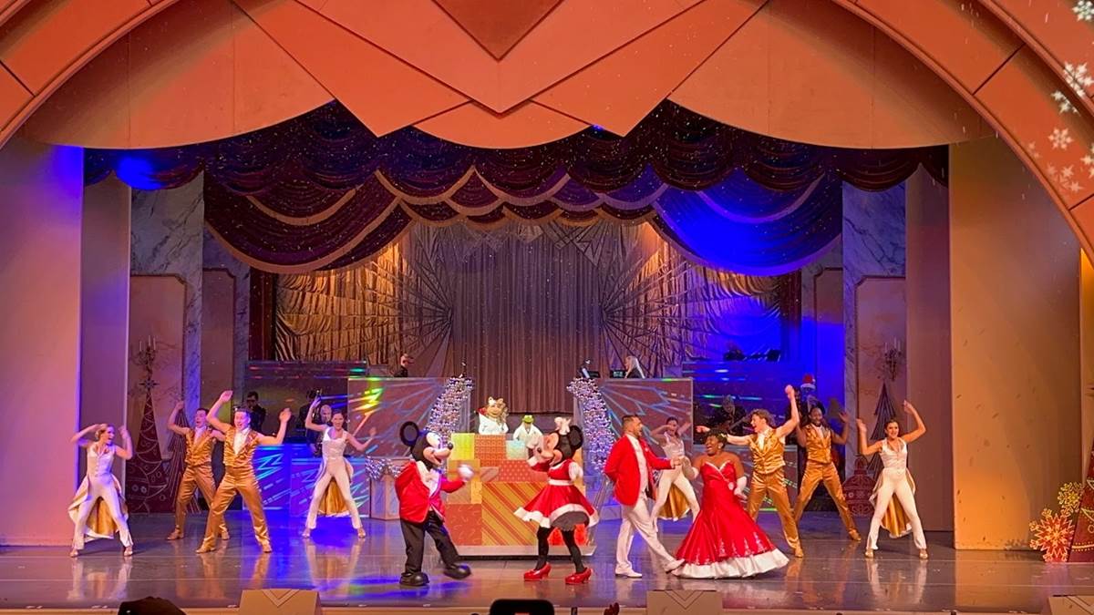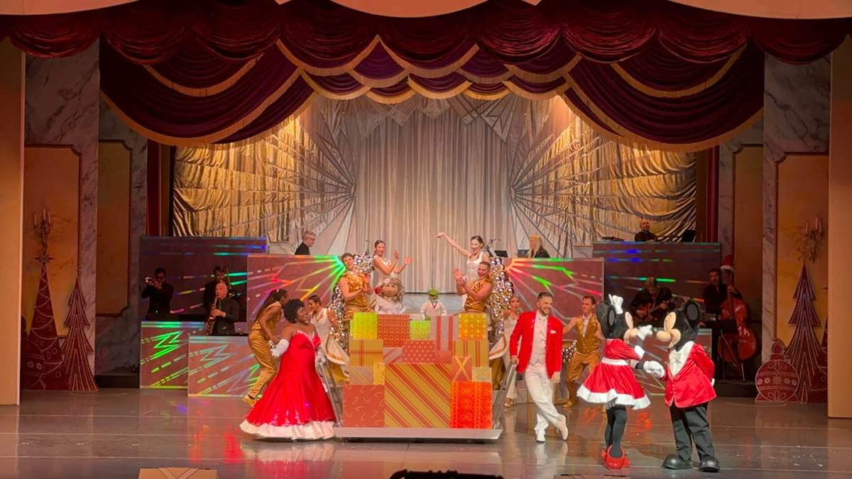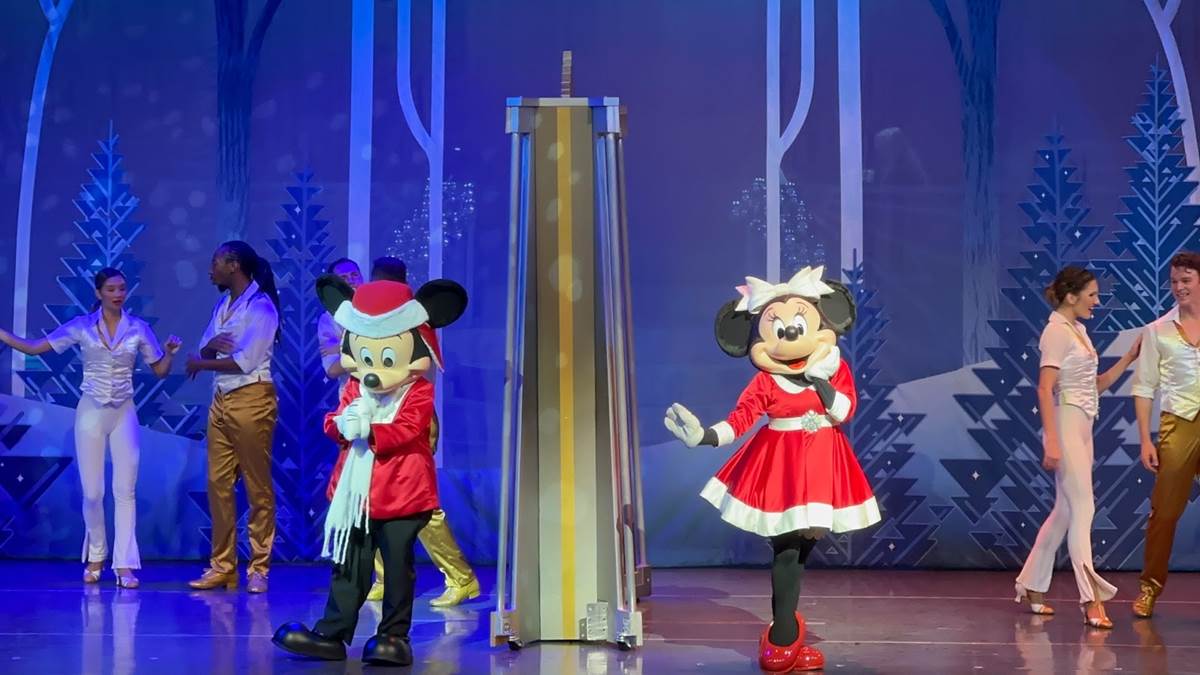 A holiday show wouldn’t be complete without Mickey and Minnie, seen here dressed as Santa and Mrs. Clause. They come out to help “Deck the Halls."