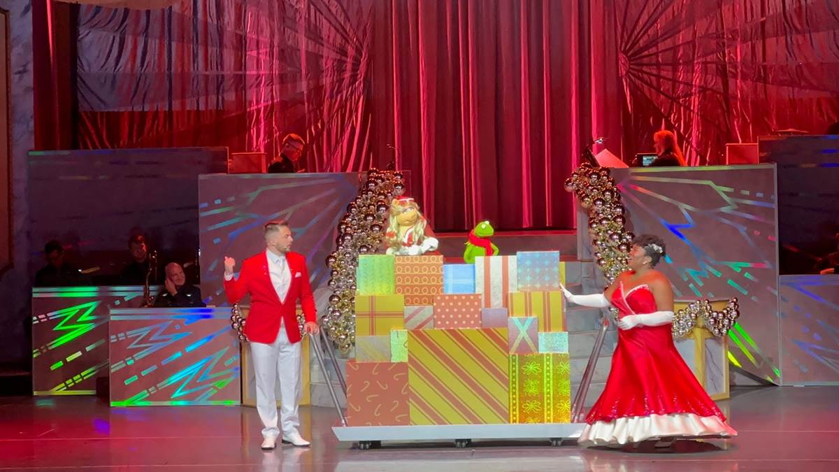 Following an introductory song, the show kicks into high gear as Miss Piggy sings “Toyland" from Babes in Toyland, while Kermit tries to convince her of the real meaning of Christmas.