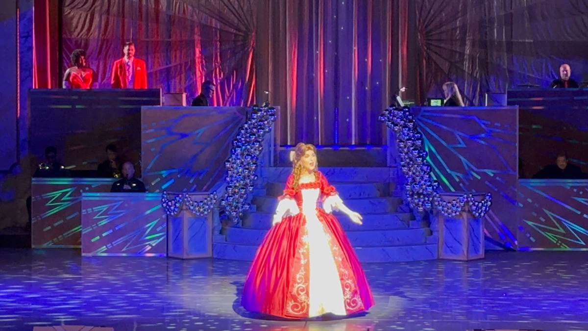 Dressed in her gorgeous gown from Beauty and the Beast: The Enchanted Christmas, Belle then comes out on stage to perform “As Long As There’s Christmas" from the aforementioned film.