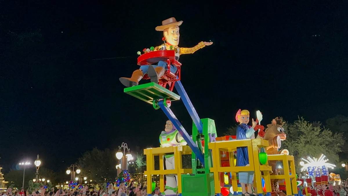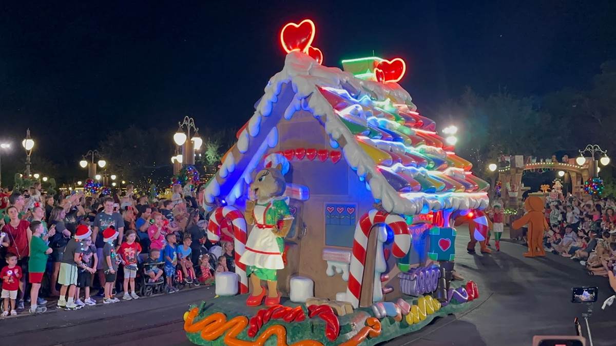 Main Street U.S.A. comes alive with the yuletide spirit of dancing gingerbread men, marching toy soldiers and beloved Disney Characters as they float by, waving hello. There’s even a special appearance by Santa Claus–riding in to wish everyone a Merry Christmas. New to the parade this year is Clarice, riding on a Gingerbread House float where Wreck-It Ralph previously stood.